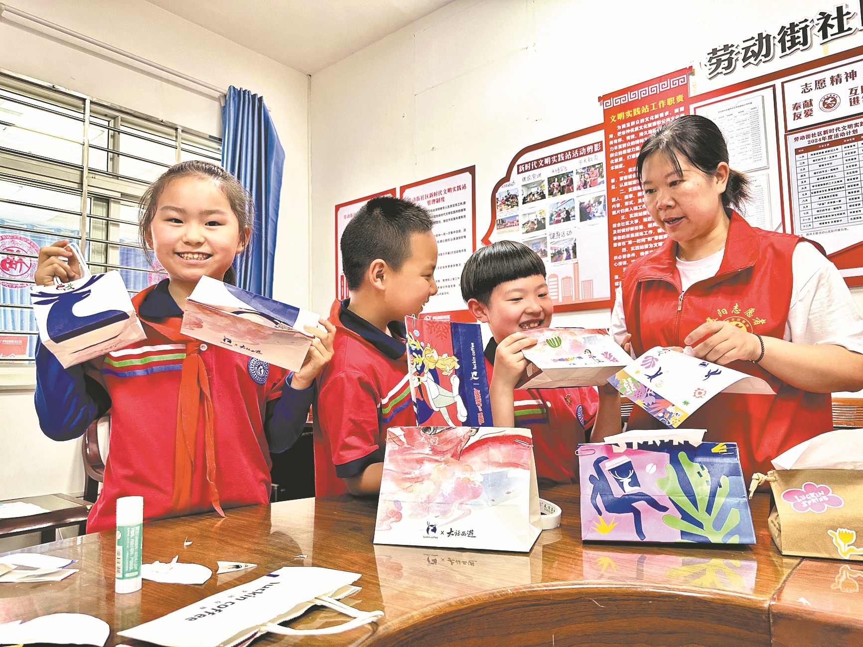 5月15日,樊城区劳动街社区邀请磁器街小学的学生,开展创意手工活动,向孩子们宣传资源循环利用的环保理念,引导他们培养健康、科学的生活方式和消费理念。