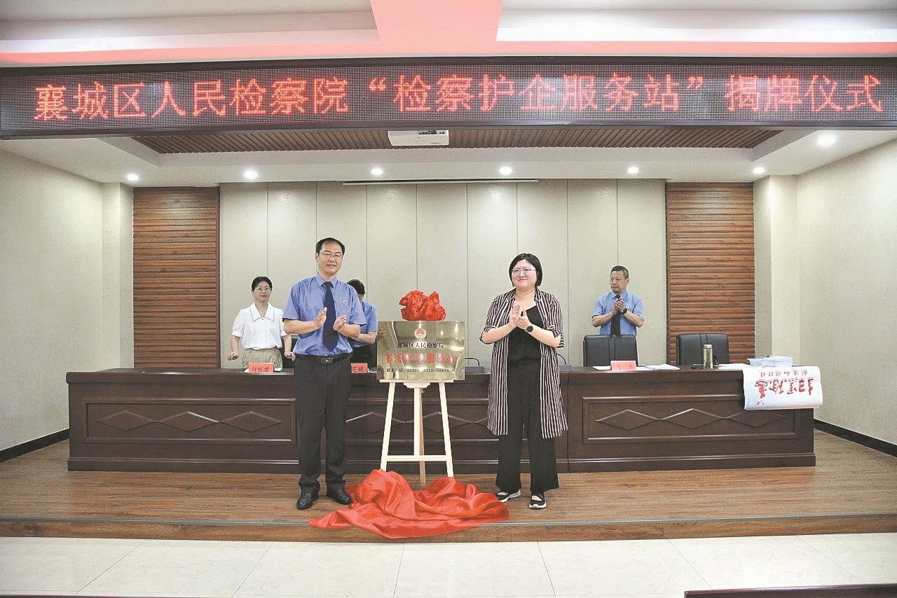 6月21日,襄城区检察机关首个“检察护企服务站”在襄城经济开发区管委会揭牌。该“检察护企服务站”投入运行后,将采取“定期出诊+巡回问诊+个案听诊+联合会诊”相结合的方式,围绕法治宣传、法律咨询、风险提示、合规治理等方面,不断优化服务企业发展的各项措施,为企业发展提供“一站式”检察服务。