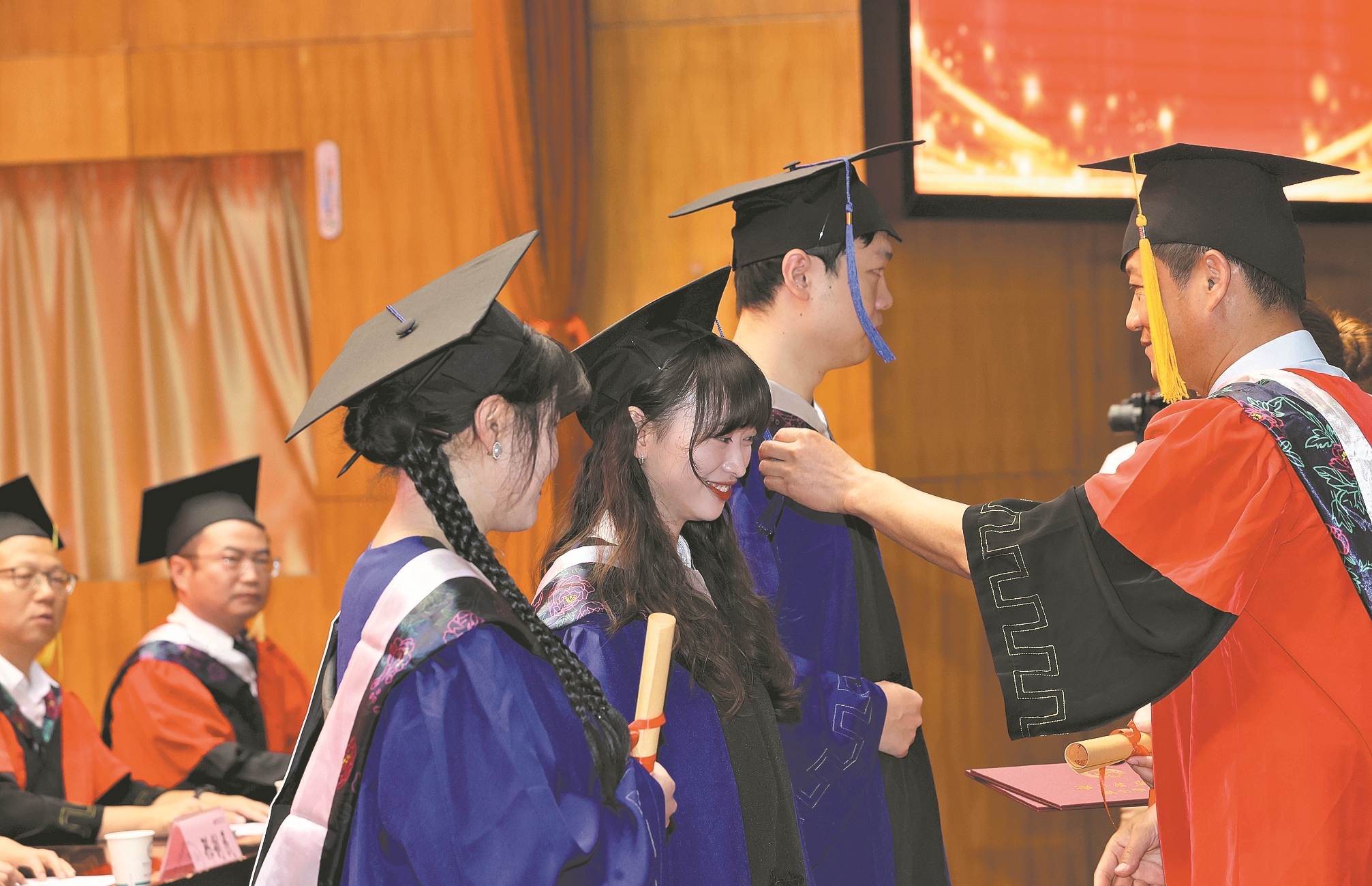 6月24日,在襄阳市第一人民医院学术报告厅,该院院长周卫兵带领导师们为学生拨穗。当天,襄阳市第一人民医院举行2024届硕士研究生毕业典礼,欢送53位毕业生开启人生新征程。据悉,2014年起,襄阳市第一人民医院成为襄阳地区首家独立承担硕士研究生培养工作的医院,截至目前,培养的硕士毕业生总数达176人,在院研究生256人,导师近百人。