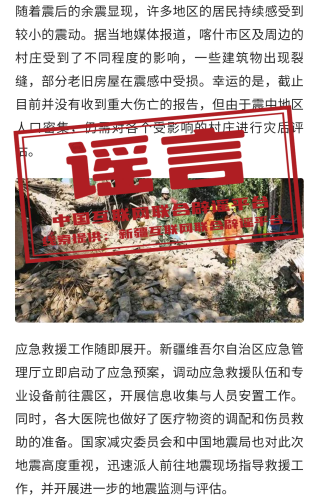 谣言:新疆喀什发生6.3级地震?