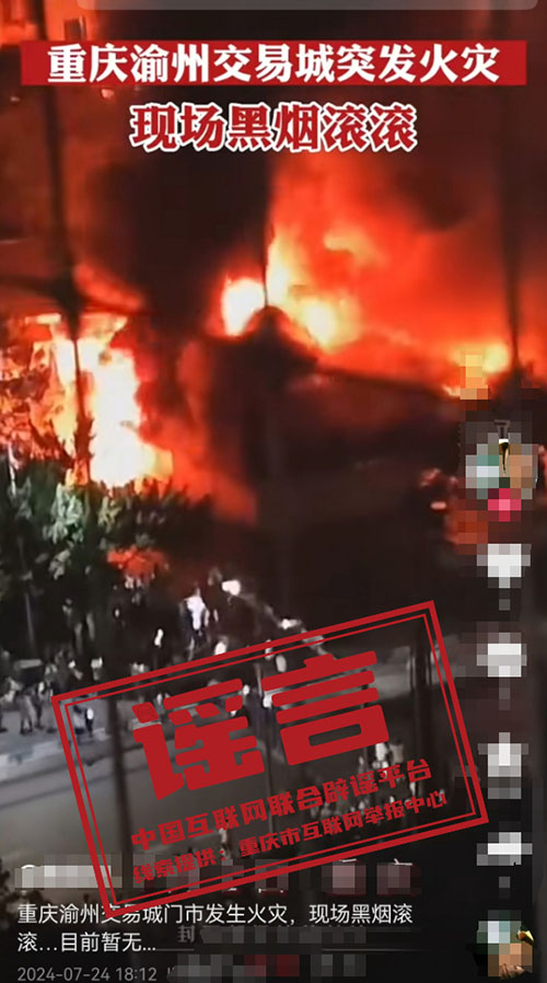 真相:近日,某网民发布视频称“重庆渝州交易城突发火灾,现场黑烟滚滚”,引发关注。经向重庆市相关部门核实,该视频画面为2022年7月3日九龙坡区石桥铺渝州交易城某门市火情,当时并未造成人员伤亡,网传信息不实,系旧闻炒作。该片区域早已进行重建及修复,目前,渝州交易城各门市正常经营。(来源:“重庆辟谣”微信公众号)