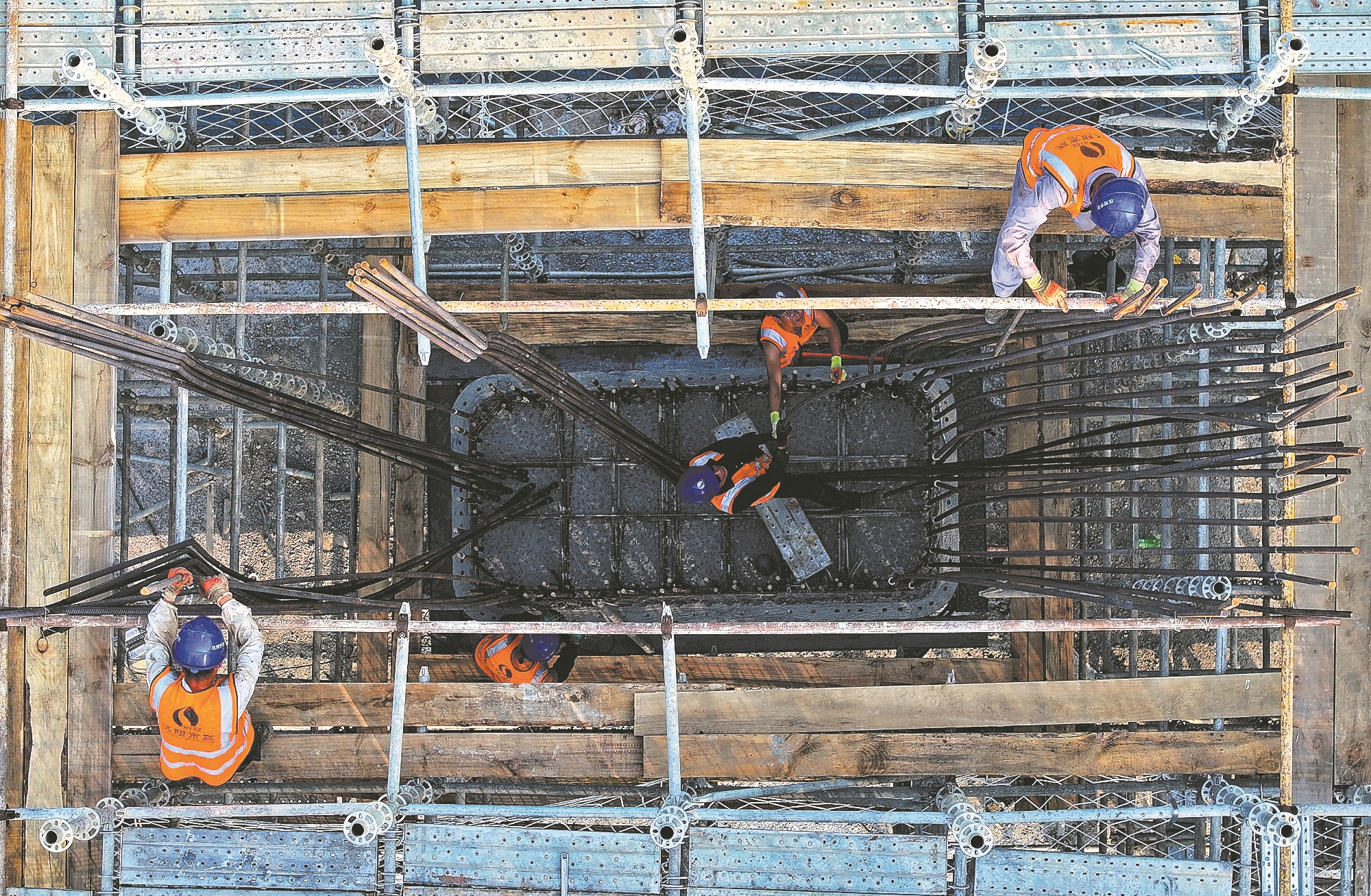 9月3日,施工人员在邓城大道光彩路口节点立交改造项目建设桥墩。该项目是重要民生工程,建成后将提高光彩片区交通效率,解决交通拥堵问题。