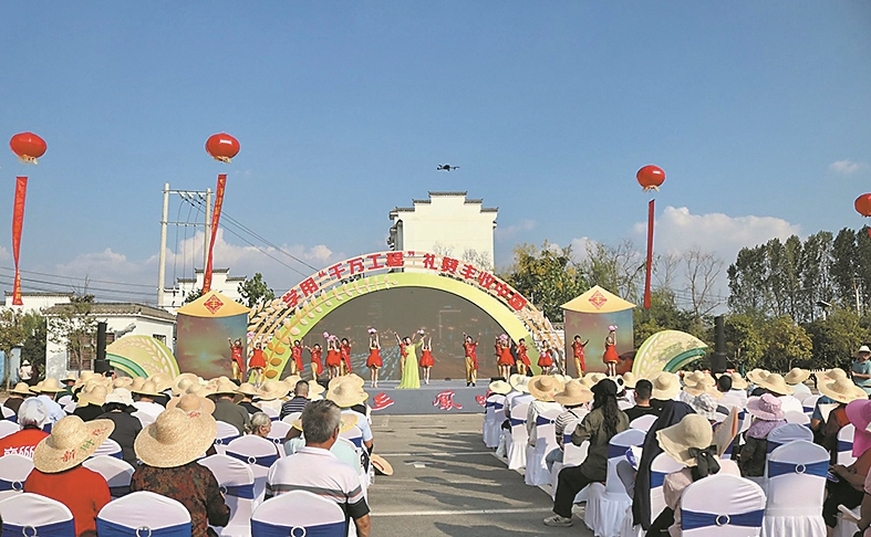 9月20日,学用“千万工程”礼赞丰收中国学习贯彻党的二十届三中全会精神文艺宣讲湖北音乐家走进襄州惠民演出活动在峪山镇举行。演艺人员载歌载舞,群众欢庆丰收之喜、共赏发展新章。