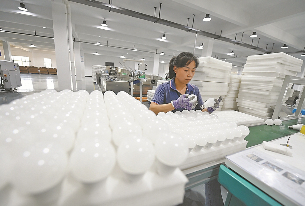 9月26日,在位于南漳县的湖北欧品位光电科技产业园二期项目车间,工人正忙着生产、组装智能LED节能灯。据介绍,该公司产品畅销墨西哥等国家。
