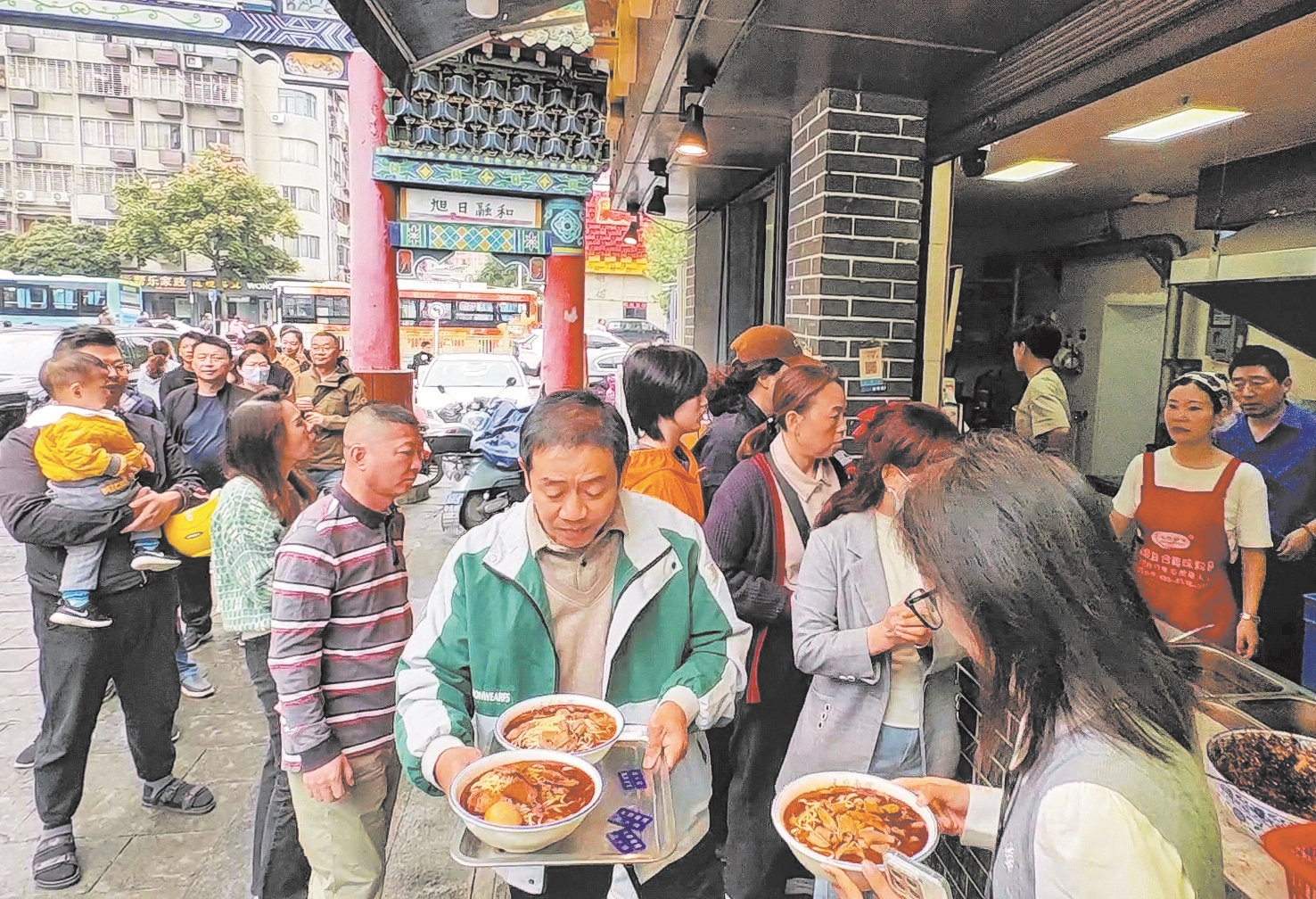 “马上就要回武汉了,临走前还得吃一碗牛肉面。‘麻辣鲜香舌尖走,醇厚滋味齿间留。’这个味道真是特别勾人!”来自武汉的张先生当天选择在江朋面馆吃面,他说,“吃完面,再喝口面汤,真是太满足了。”