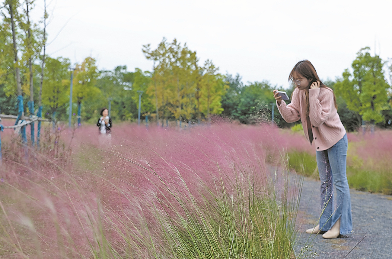 10月19日,襄城滨江大道上成片的粉黛乱子草花开正艳,引得市民纷纷驻足拍照。近期,我市粉黛乱子草竞相绽放,粉红色的花穗随风摇曳,如烟似纱,构成了一幅幅令人心旷神怡的秋日粉色画卷。
