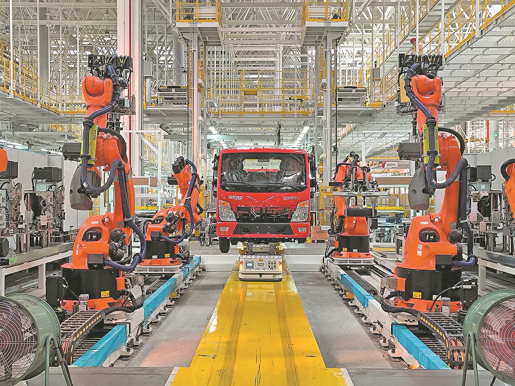 10月25日,在襄阳轻型商用车智能制造和绿色工厂升级项目轮胎自动装配工作站,机械臂在3D视觉引导下,为到站车辆自动装配轮胎。据悉,该项目同时引进了轮胎自动装配、车架自动翻转、玻璃自动装配、油水自动加注、VIN码自动打刻等自动化设备,构建国内最完备的轻型商用车制造自动化工作站。