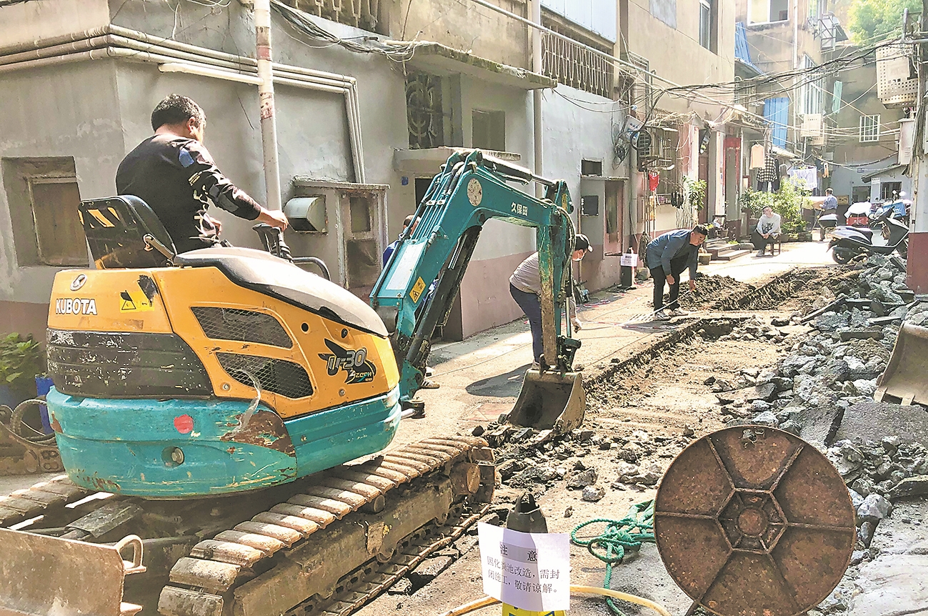 10月28日,襄城区集锦巷内,王府口社区聘请的施工人员正进行管道更换。此前该巷两户居民进行危房改造时,混泥土进入下水管道,导致污水外溢。对此,社区及时开展协调工作,对管道进行更换,保障居民正常排水。