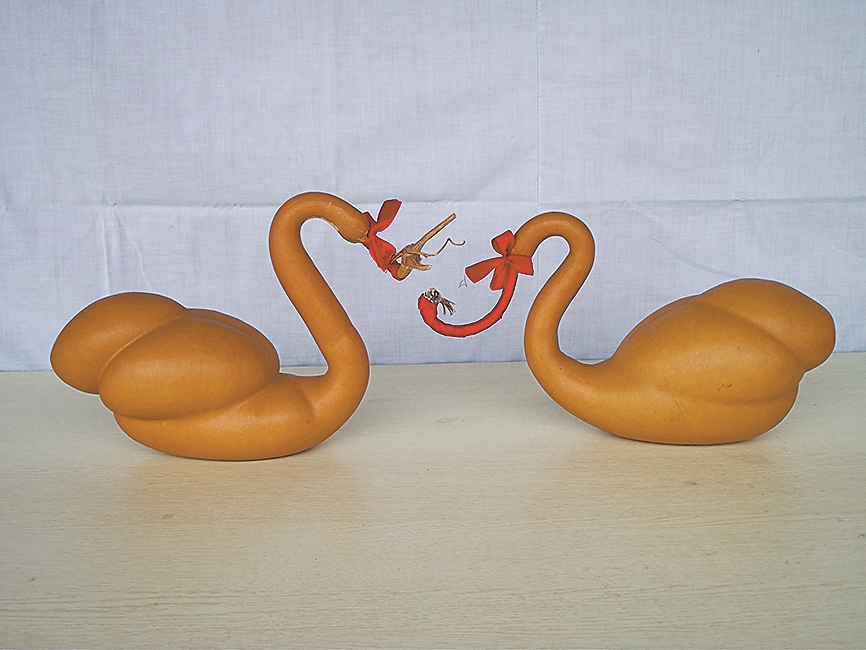 王发元:自古以来,葫芦就被认为是吉祥的象征。例如中国传统婚庆时,会把一个匏(葫芦)剖成两半,当作饮酒之器,让新婚夫妻喝交杯酒;民间还有“葫芦压窗台,财源滚滚来”的谚语。