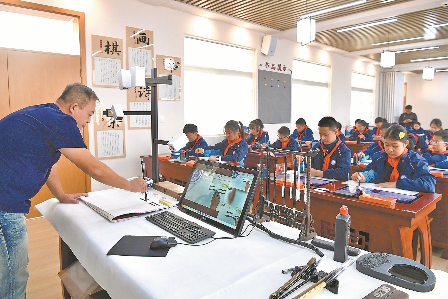 11月7日,襄阳市第二实验小学开展“书法进校园”活动,邀请襄阳市书法家协会主席刘春鑫和成员一行走进课堂,向学生们传授书法技艺,弘扬优秀传统文化。