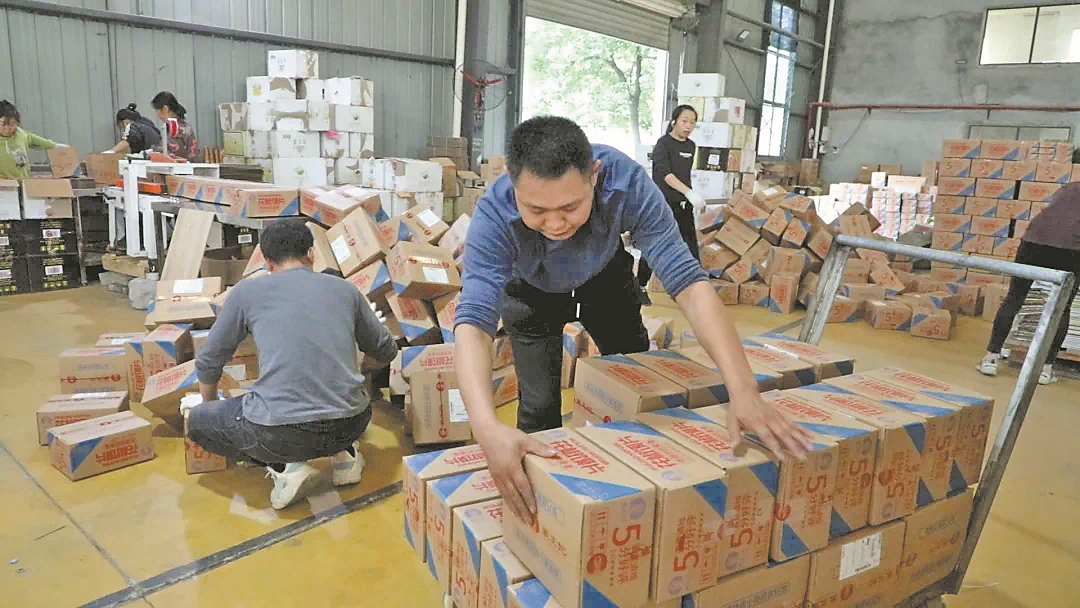 11月9日,襄州区襄梦电商产业园云仓发货现场,工作人员忙着将各类农副产品打包销往全国各地。据悉,该园区近期在多个主流平台开设10个直播间进行产品销售,每天出货量近5000件。