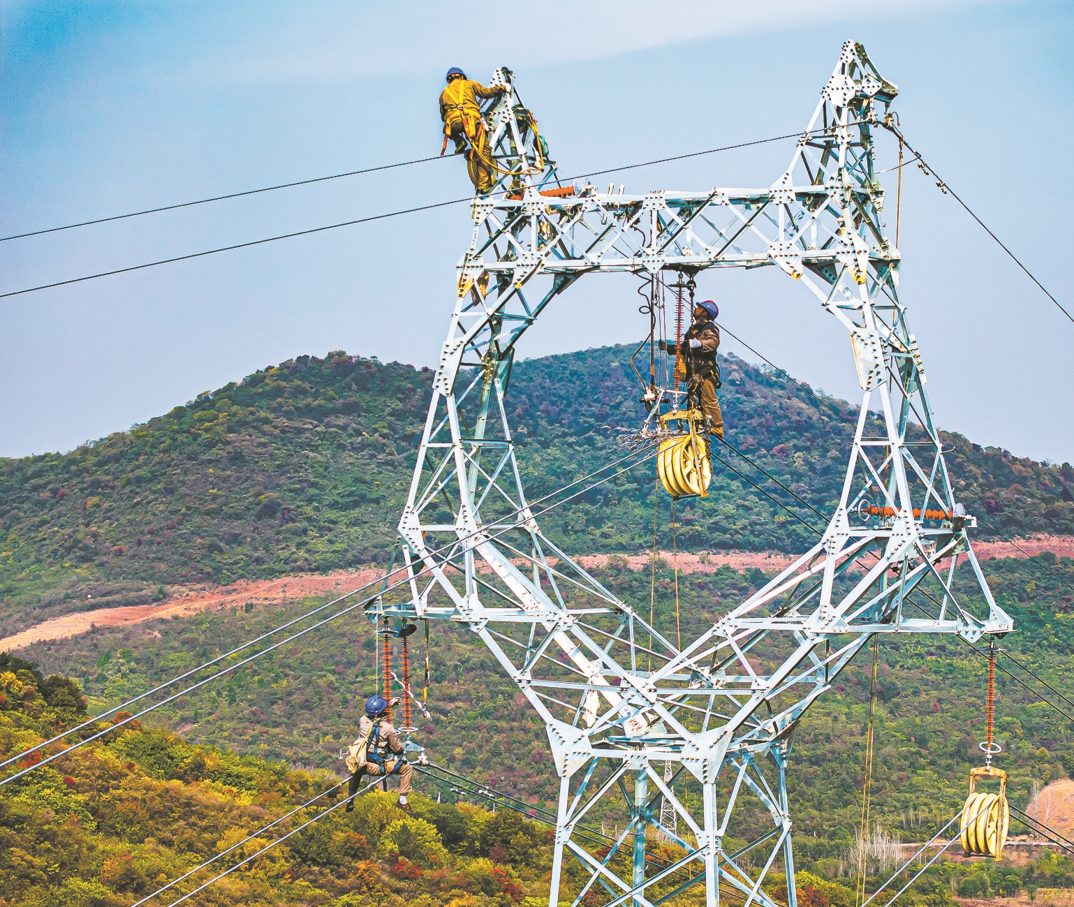 11月7日上午,电力人员在位于黄家湾风景区的顺安—尹集110千伏线路上作业。为进一步优化营商环境,提升襄城片区电网供电能力,为湖北锂源新能源科技公司磷酸铁锂、磷酸铁生产线以及襄城尹集大学城提供可靠电源保障,襄电集团输变电工程分公司抓紧建设尹集110千伏输变电工程。