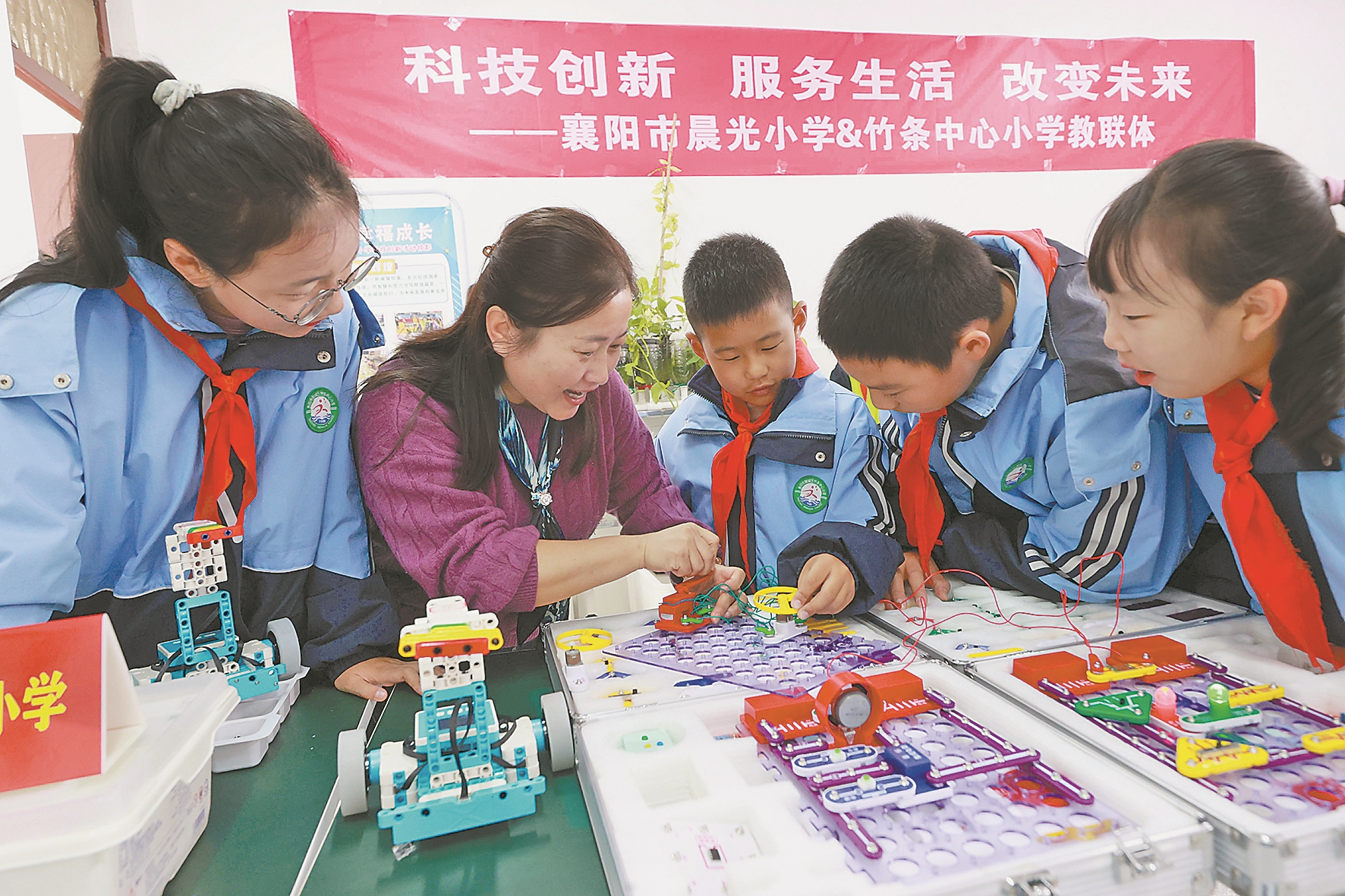 11月12日,樊城区竹条中心小学的学生在进行电子百拼和星际穿越机器人拼装。该校搭建多元特色发展平台,开设多彩社团,为学生搭建探索奥秘、施展才华的舞台,丰富了学生课余生活。