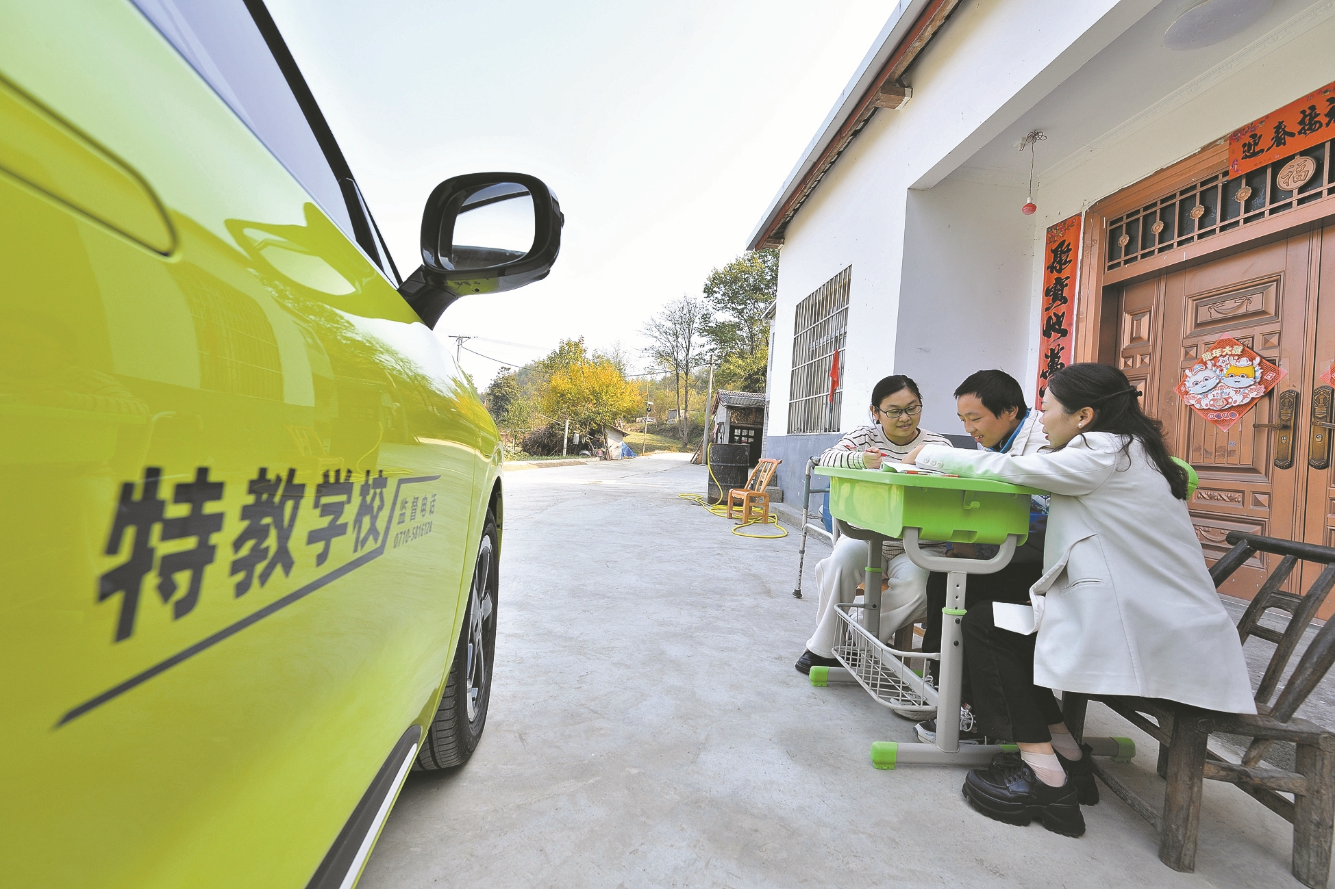 近日,在保康县歇马镇尚家坡村,保康县特殊教育学校教师在为一名残疾儿童辅导作业。2017年,该校启动送教上门志愿服务项目,为不能到校就读的残疾儿童“送政策、送温暖、送康复、送知识”,让他们足不出户就能享受到与在校学生一样的特殊教育服务。