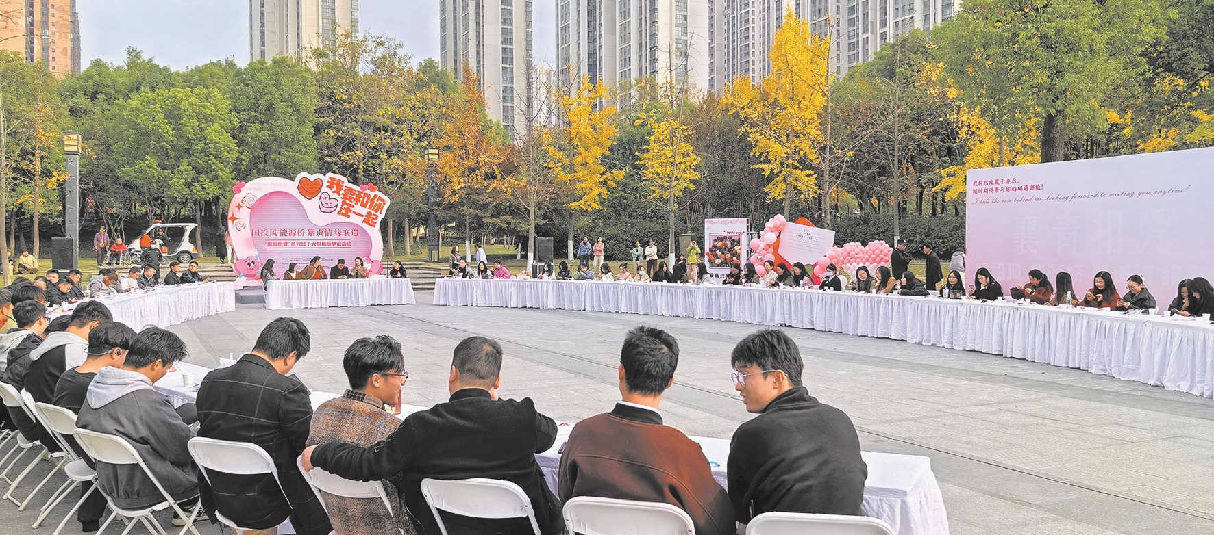 小雪之日,温情相遇。11月22日,由共青团襄阳市委联合汉江国有资本投资集团有限公司、襄阳融媒体中心(新闻传媒集团)、国家税务总局襄阳鱼梁洲经济开发区税务局主办,共青团襄城区委、共青团襄州区委协办,襄阳能源集团有限责任公司、襄阳市住房保障运营管理有限公司、襄阳市水利规划设计院有限公司、襄阳日报加油汉江文化传媒有限公司联合承办的“国投风 能源桥 紫贞情 缘襄遇”“襄青相爱”系列线下大型青年联谊活动在襄阳市紫贞公园顺利举办。共有90余名青年赴此青春之约。