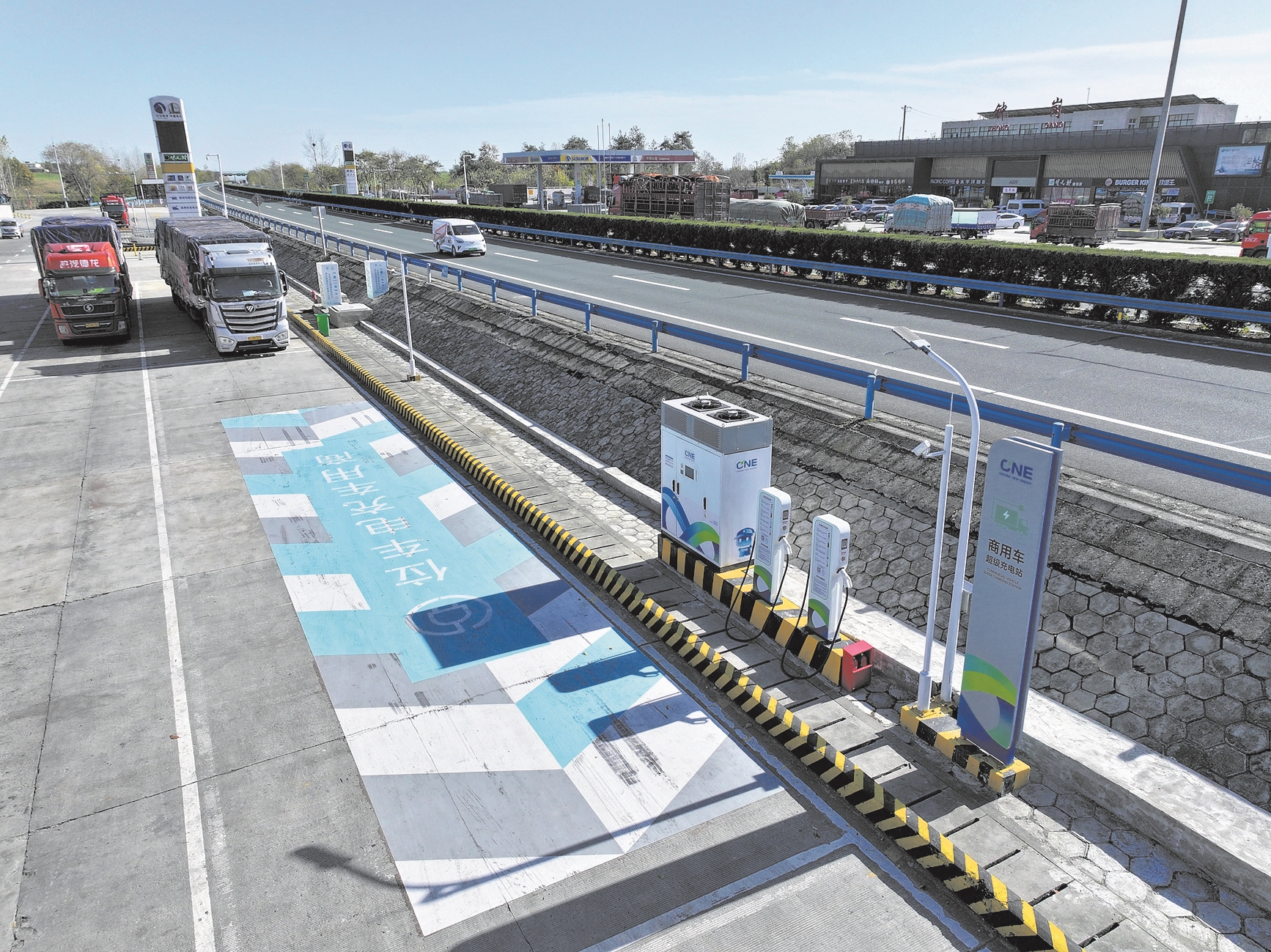 11月27日,车辆停靠在汉十高速钟岗服务区超级充电桩旁。作为湖北高速首条综合能源示范线的重要一环,钟岗服务区在设置普通充电站和换电站的同时,还配备了专为电动重卡补能充电的超级充电桩,能实现双枪同充,有效解决电动重卡补能续航难题。