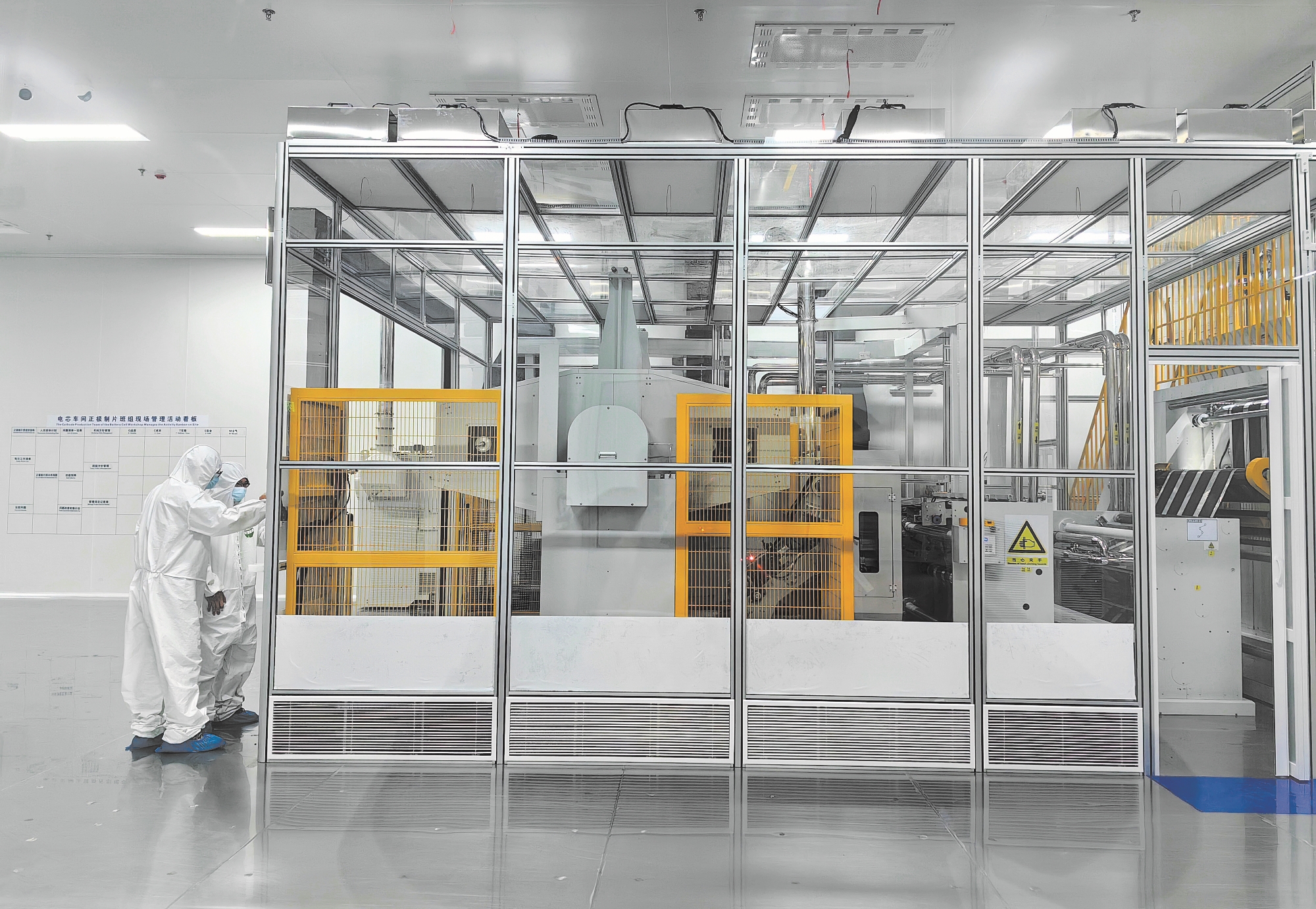 12月4日,在骆驼集团新能源低碳产业园内,技术人员正在调试生产线。