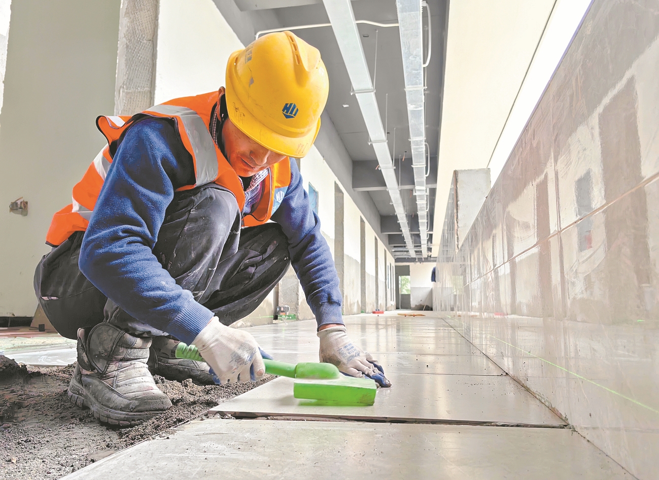 12月9日,汉江城建集团工人在襄阳科技职业学院二期工程学生宿舍进行室内装修。该项目总建筑面积11.64万平方米,建成后办学规模将达到1.2万人。目前,该项目主体结构已全部完工,正在全面开展室内装修作业,确保高质量如期完工。