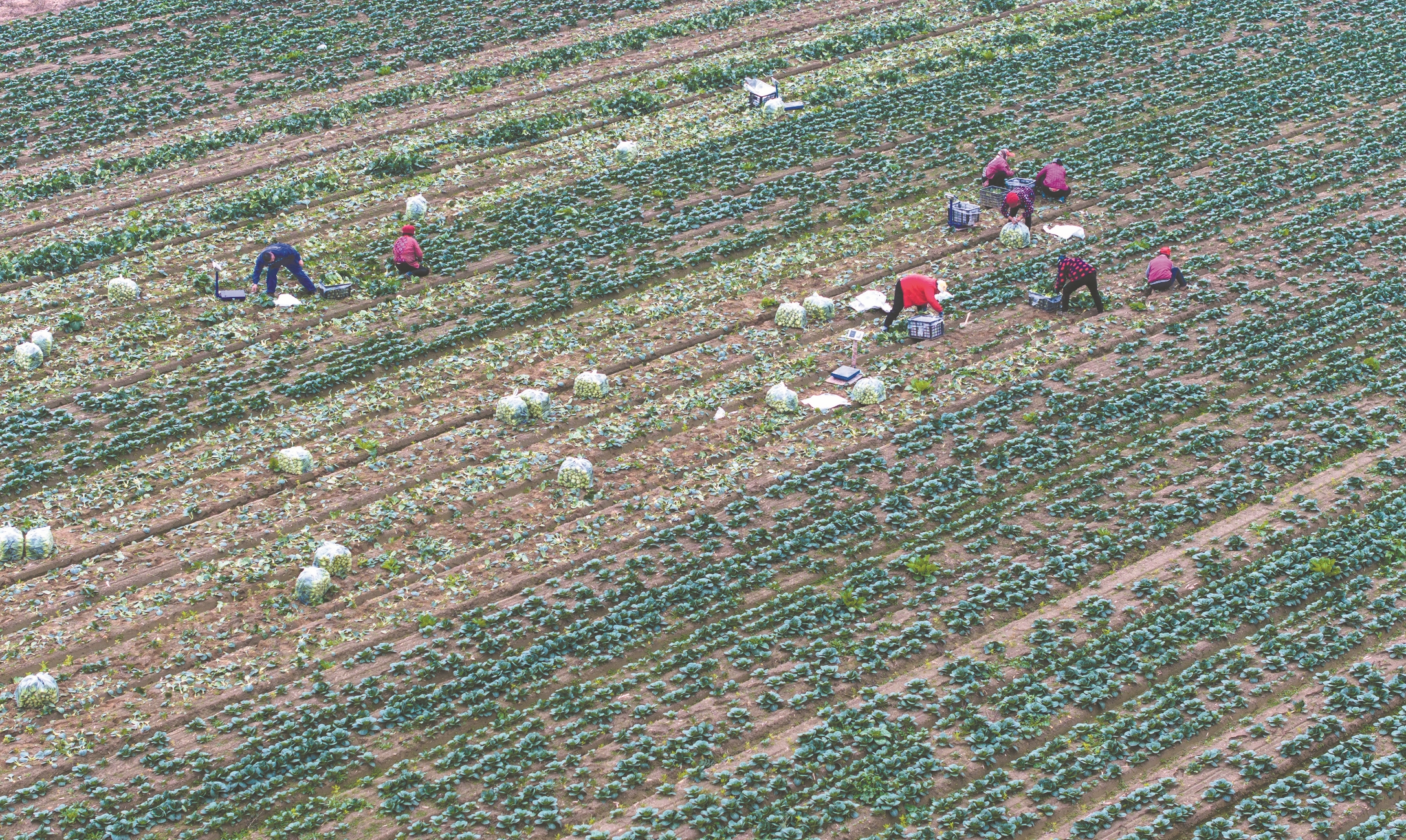 12月10日,村民在襄城区欧庙镇胡河村采收上海青。近期,欧庙镇上海青、黄心大白菜进入采收期,这些蔬菜经采收、分拣、装箱后,销往韩国、马来西亚等国家和地区。