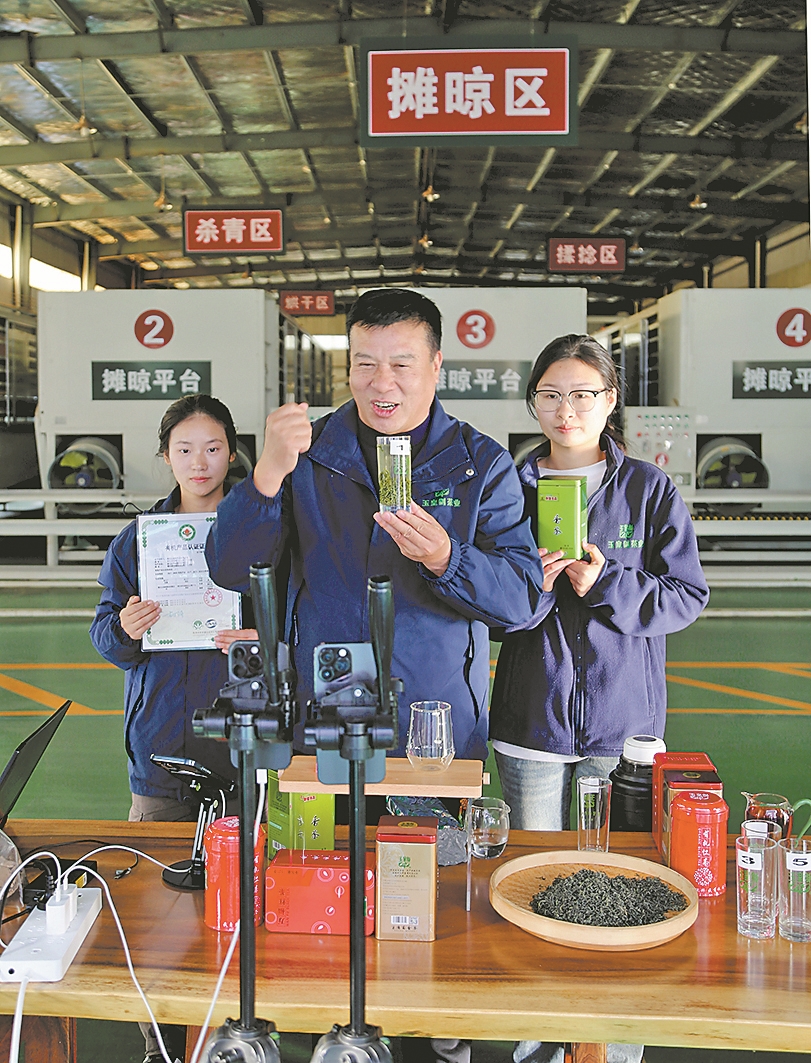 近日,湖北省劳动模范、谷城县玉皇剑茶业专业合作社理事长张于学走进网络直播间,免费帮茶农卖绿茶、红茶等产品,助力他们增收致富。