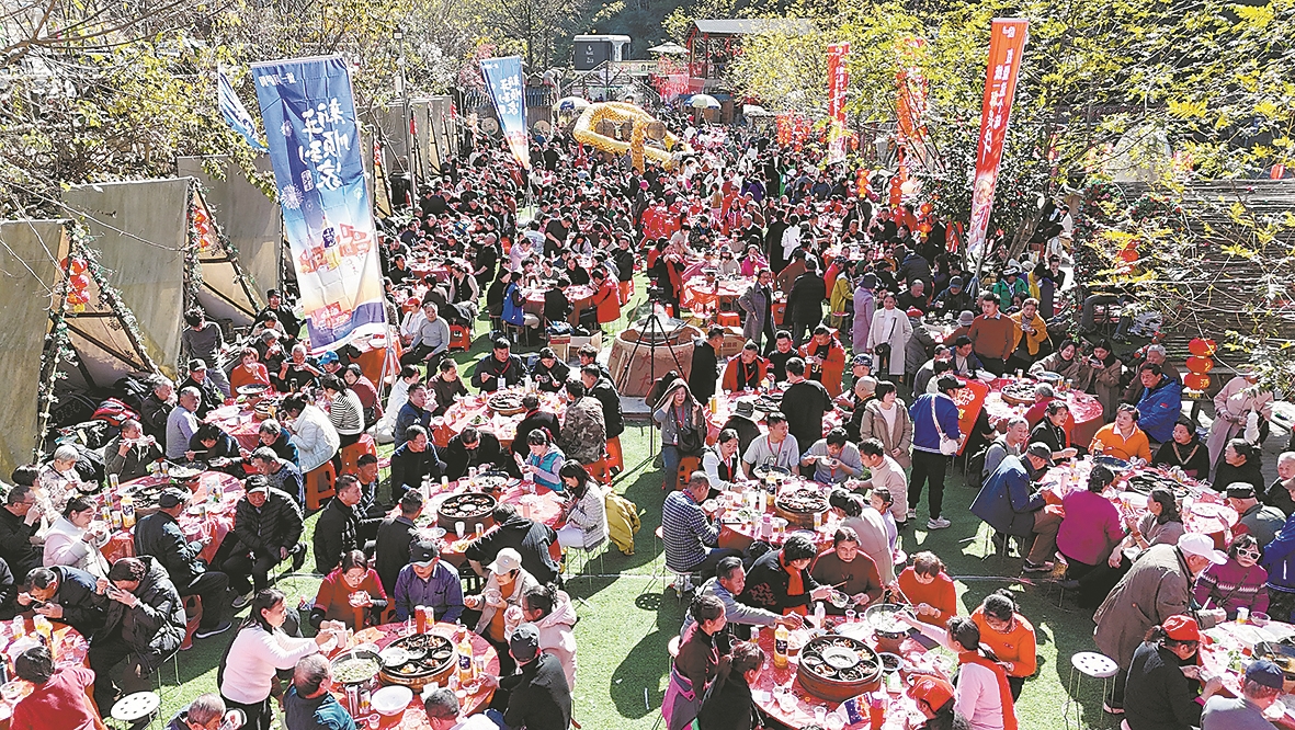 12月8日,谷城县班河大峡谷景区举办“品美味 赏非遗 购年货”农文旅惠民活动,吸引2000余人参加。游客一边吃农家宴席,一边观看非遗表演云雾山锣鼓,临走时再带上一份农特产品大礼包,乘兴而来、满意而归。
