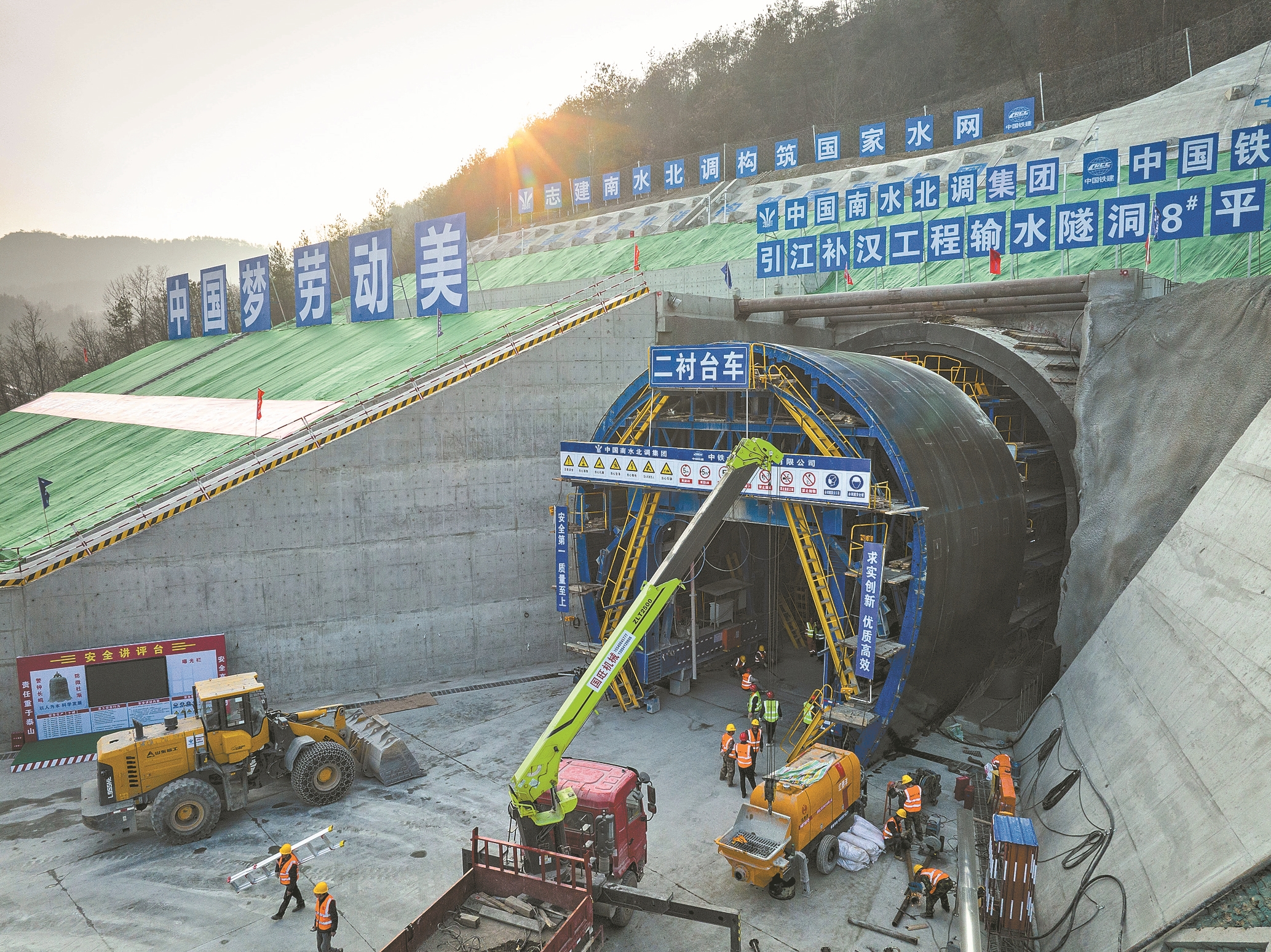 1月8日在保康县马良镇拍摄的引江补汉工程输水隧洞8号平洞施工现场(无人机照片)。近日,南水北调后续工程首个重大项目——引江补汉工程进入全面施工阶段。作为我国长距离有压引调水隧洞中单洞长度最长、洞径最大、综合难度最高的工程项目,引江补汉工程从长江三峡库区引水至汉江丹江口水库下游安乐河口,输水线路总长194.7公里。引江补汉工程是加快构建国家水网主骨架和大动脉的标志性工程。建成后,将实现三峡水库和丹江口水库两大国之重器隔空“牵手”,可有效提高汉江流域水资源调配能力,增加南水北调中线工程北调水量,并为引汉济渭实现远期调水规模创造条件。 新华社 发