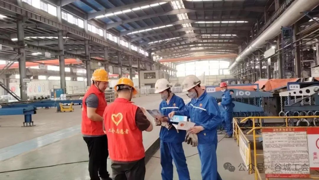 为维护职工合法权益,增强职工法律意识,提升职工知法、懂法、用法的能力,促进企业劳动关系和谐稳定。5月15上午,谷城县总工会深入谷城经济开发区部分企业开展“5.18职工维权日”暨民法典宣传月活动。活动现场,县总工会志愿小分队深入企业车间班组,为企业职工发放《劳动法》、《工会法》、《湖北省实施<中华人民共和国工会>办法》、《女职工权益保护手册》等宣传资料200余册,发放《民法典》宣传折页、“加入工会十大好处”、“开展集体协商九大好处”宣传单各100余份。