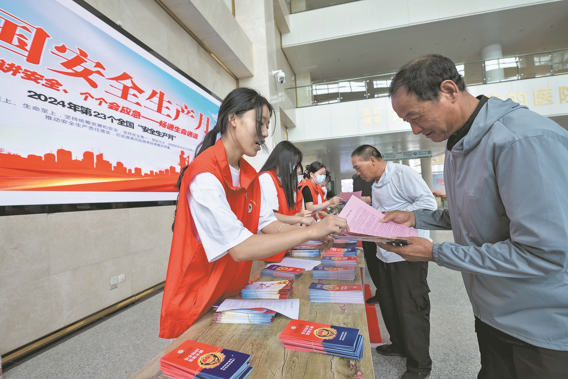 今年6月是第23个全国“安全生产月”,主题为“人人讲安全、个个会应急——畅通生命通道”。6月16日是全国安全宣传咨询日,为提升公众对安全生产的认识,普及安全生产知识,襄阳市中心医院保卫处在东津院区开展了安全宣传咨询日活动。