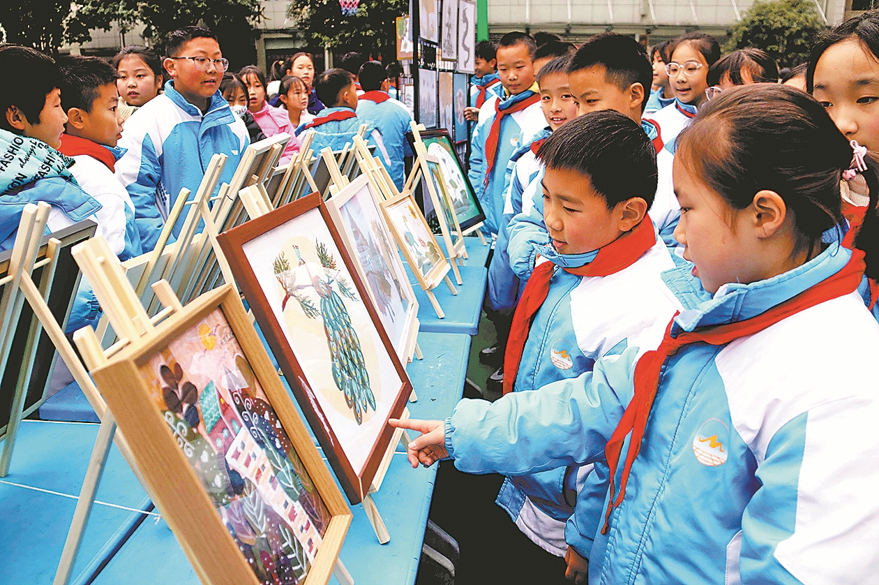 近日,南漳县实验小学举行铸牢中华民族共同体意识“四季美育”叶贴画作品展,现场展出600多幅优秀作品。