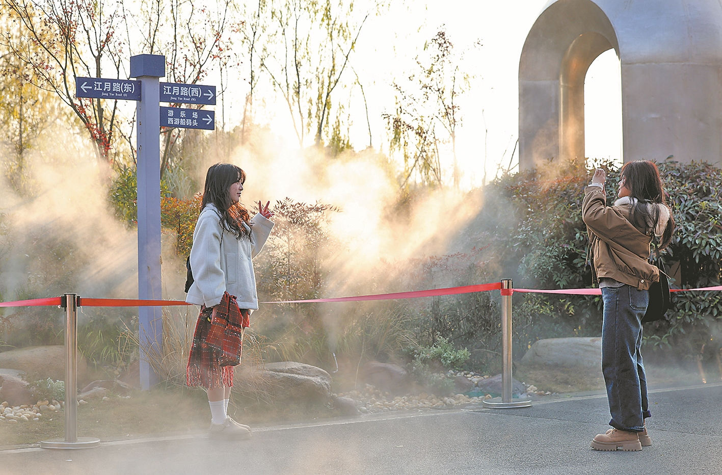 1月1日,众多市民到月亮湾公园游玩,“打卡”公园新增的“雾森”景观。
