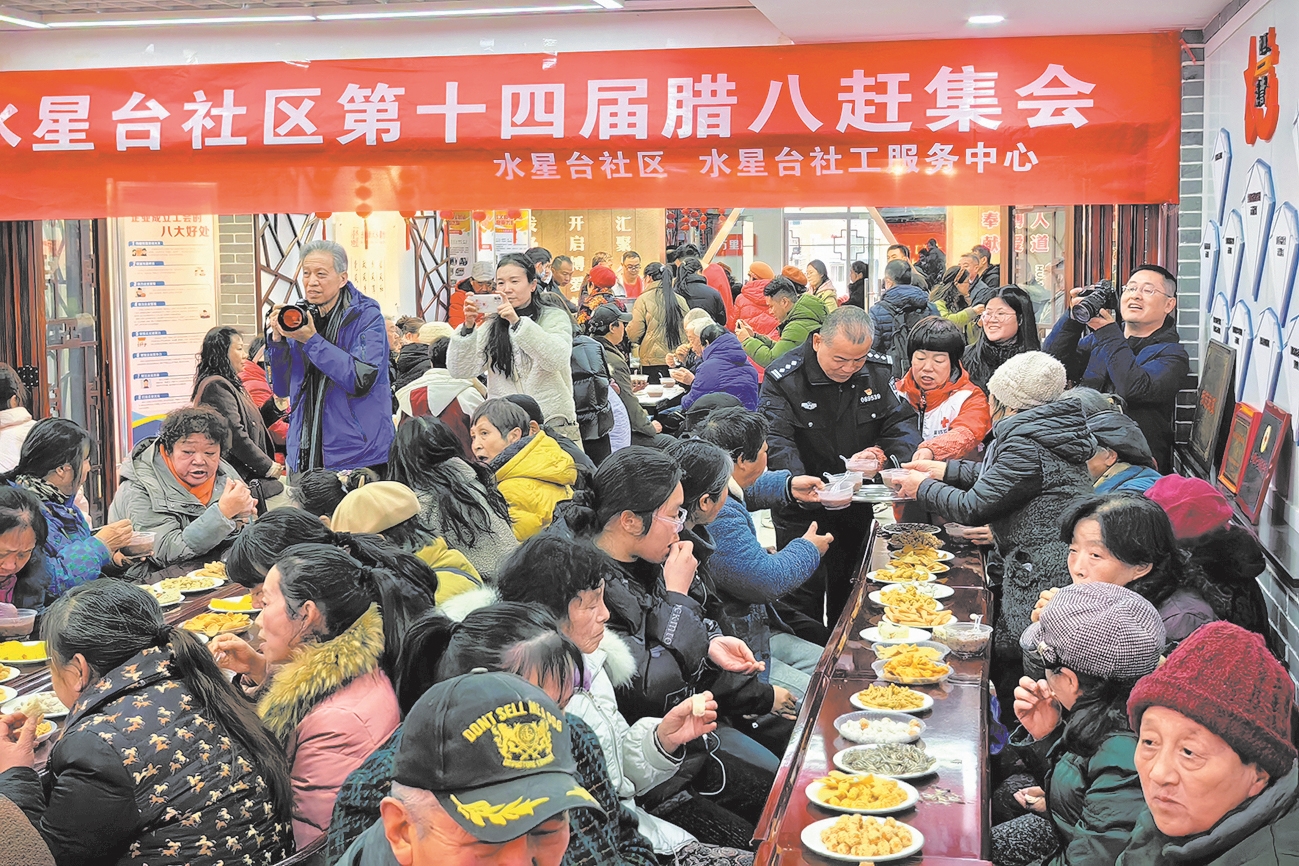 如今,一年一度的腊八赶集会已成为水星台社区居民的重要活动。徐勇国和妻子每年都参与活动,为大家熬腊八粥。