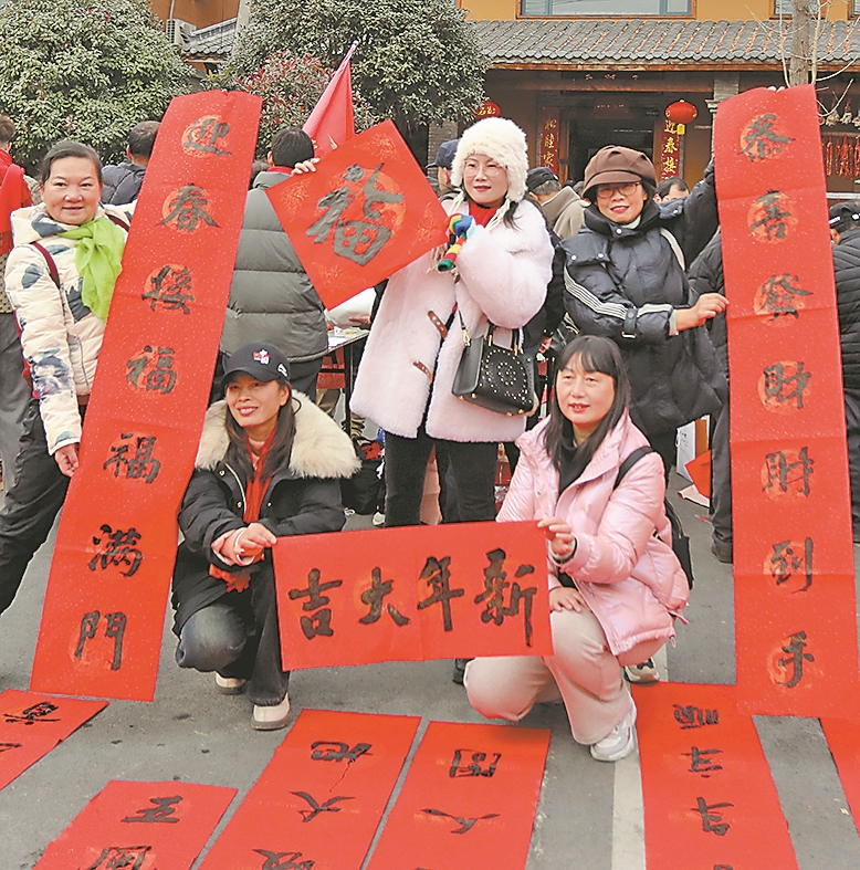 近日,2025墨润荆楚“乡村书法潮”暨湖北省书协“万福迎春”公益活动在谷城县堰河村举行,百名书法家现场为群众书写对联、送上祝福。