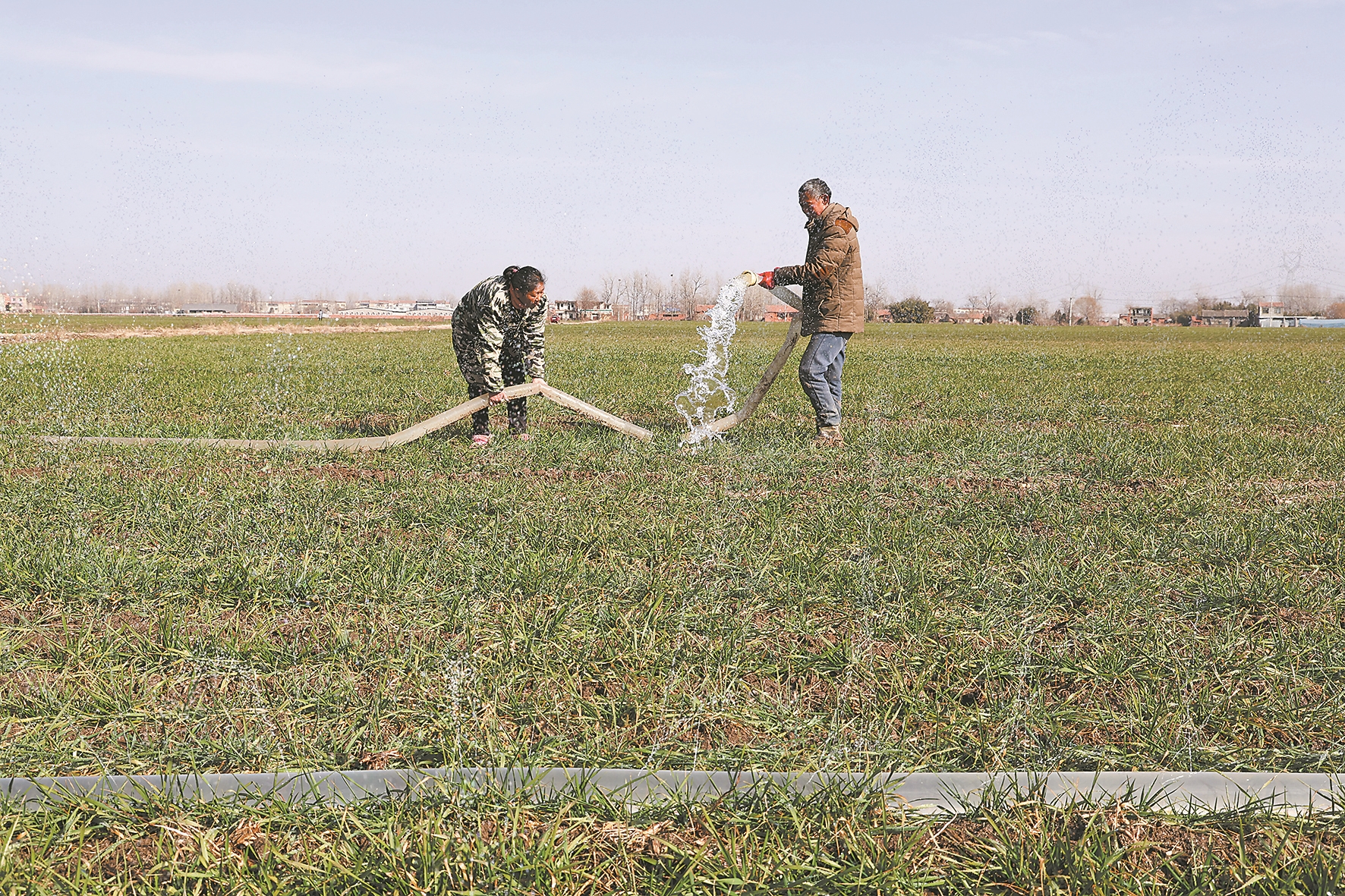1月15日,在枣阳市杨垱镇张官村,村民们正在利用机井为冬小麦浇水抗旱。入冬以来,由于雨量减少,加重了冬小麦的旱情,当地村民充分利用机井浇水抗旱,确保小麦增产增收。