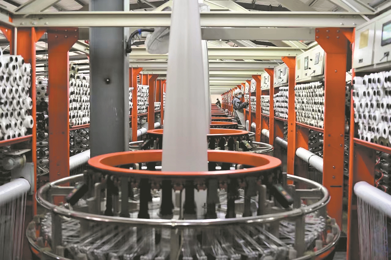 近日,在枣阳市东航塑编彩印有限公司生产车间,工人们正在加紧生产塑编产品。该公司是一家按照工业4.0标准打造的智能工厂,年可生产食品包装1.4亿条,化工、农资包装9000万条,年产值达3.6亿元。