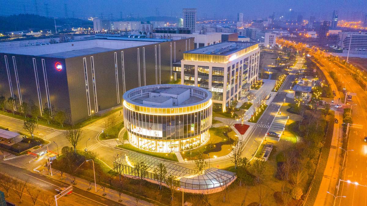 华灯初上,九峰山实验室灯火通明。(湖北日报全媒记者 魏铼 摄)