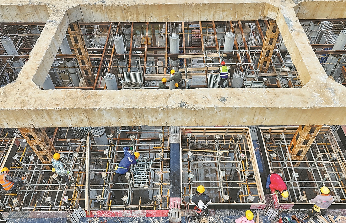 2月5日,汉江城建的工人们在邓城大道东泵站扩建工程工地开展作业。当日是春节假期后的首个工作日,各项目和企业铆足干劲忙生产,力争实现首季“开门红”。