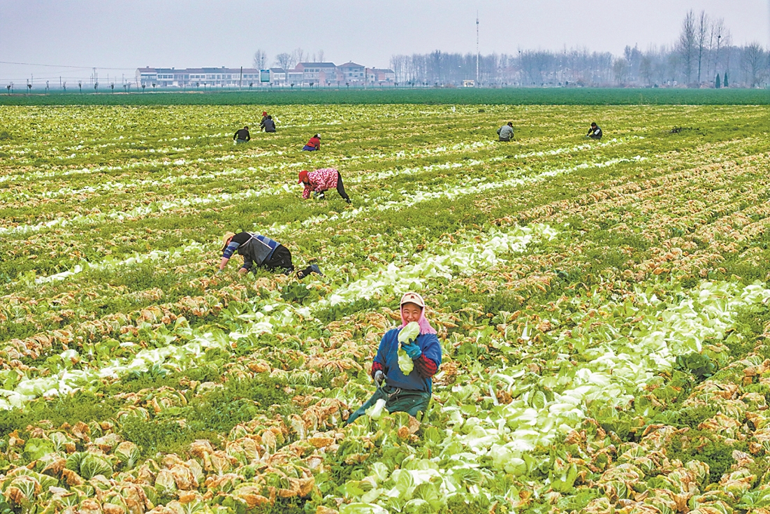2月18日,太平店镇沈河村忻睿家庭农场的娃娃菜正在收获,该家庭农场的娃娃菜采用订单式生产,采摘后直供北上广等城市,实现农产品生产规模化、订单化,充分带动附近村民就业,提高农民收入。