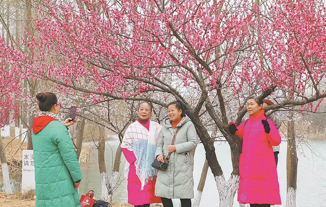 2月20日,月亮湾公园上百株梅花盛开,吸引大批市民前往拍照留影。