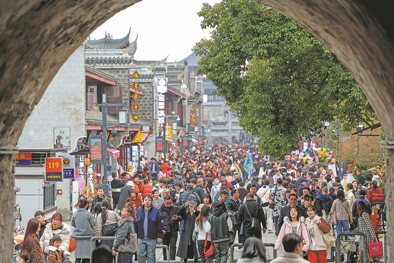 3月8日,游人在襄阳北街游玩。