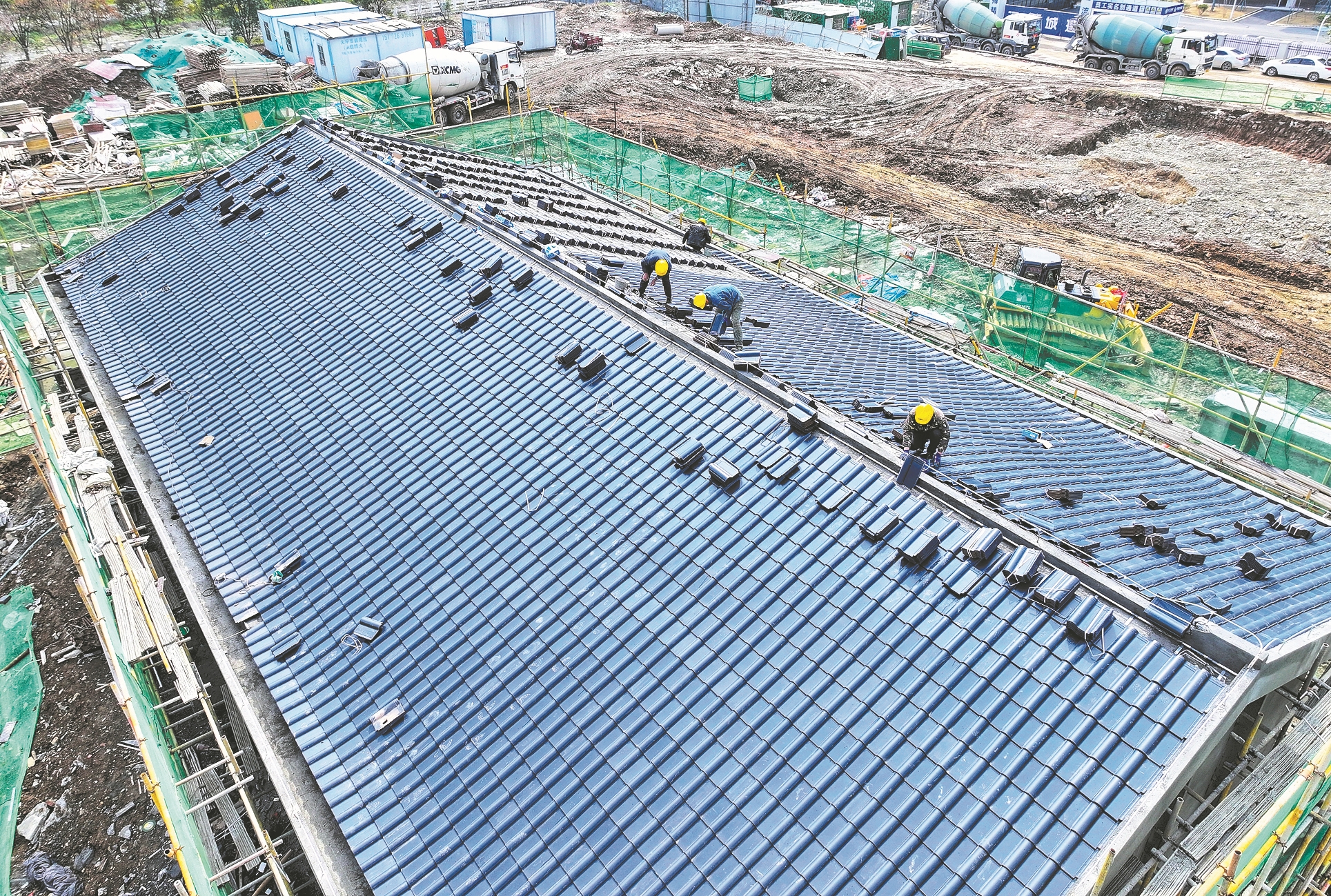 3月4日,襄阳路桥集团工人在琵琶山防汛泵站改扩建工程项目现场加紧施工。