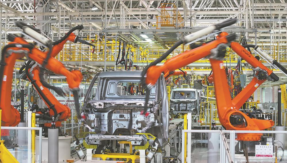 “我们的车架、前后桥、油箱、轮胎、发动机等20余种大总成均实现了上线自动化,上线自动化率95%。”古炜介绍,“算下来150秒就有一台新车在这里下线。生产线可装配600多种车型,实现纯电车、混动车、燃油车等多种车型自由切换。”