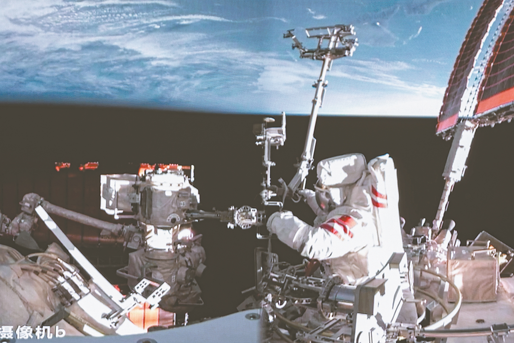 2021年7月4日,神舟十二号航天员刘伯明、汤洪波身着第二代“飞天”舱外航天服,圆满完成出舱活动期间全部既定任务。这是中国空间站阶段航天员的首次空间出舱活动。