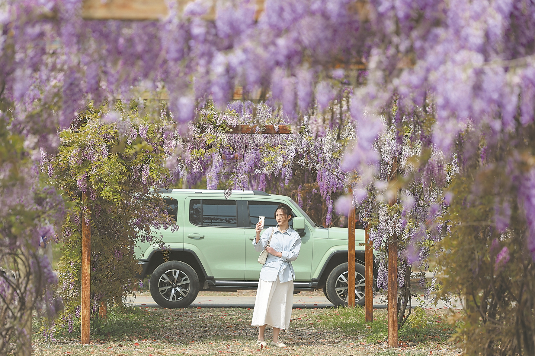 4月2日,在鱼梁洲环岛景观带附近,由紫藤打造的生态停车场吸引不少市民前来打卡拍照。据了解,该停车场车位上种满紫藤,在美化环境的同时,也为汽车撑起了一把“遮阳伞”,深受车主欢迎。