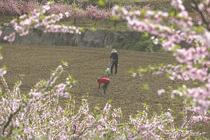 眼下,各地陆续进入玉米播种期,农民抢抓农时播种玉米。4月1日,枣阳市王城镇一村庄的村民在地里播种玉米。