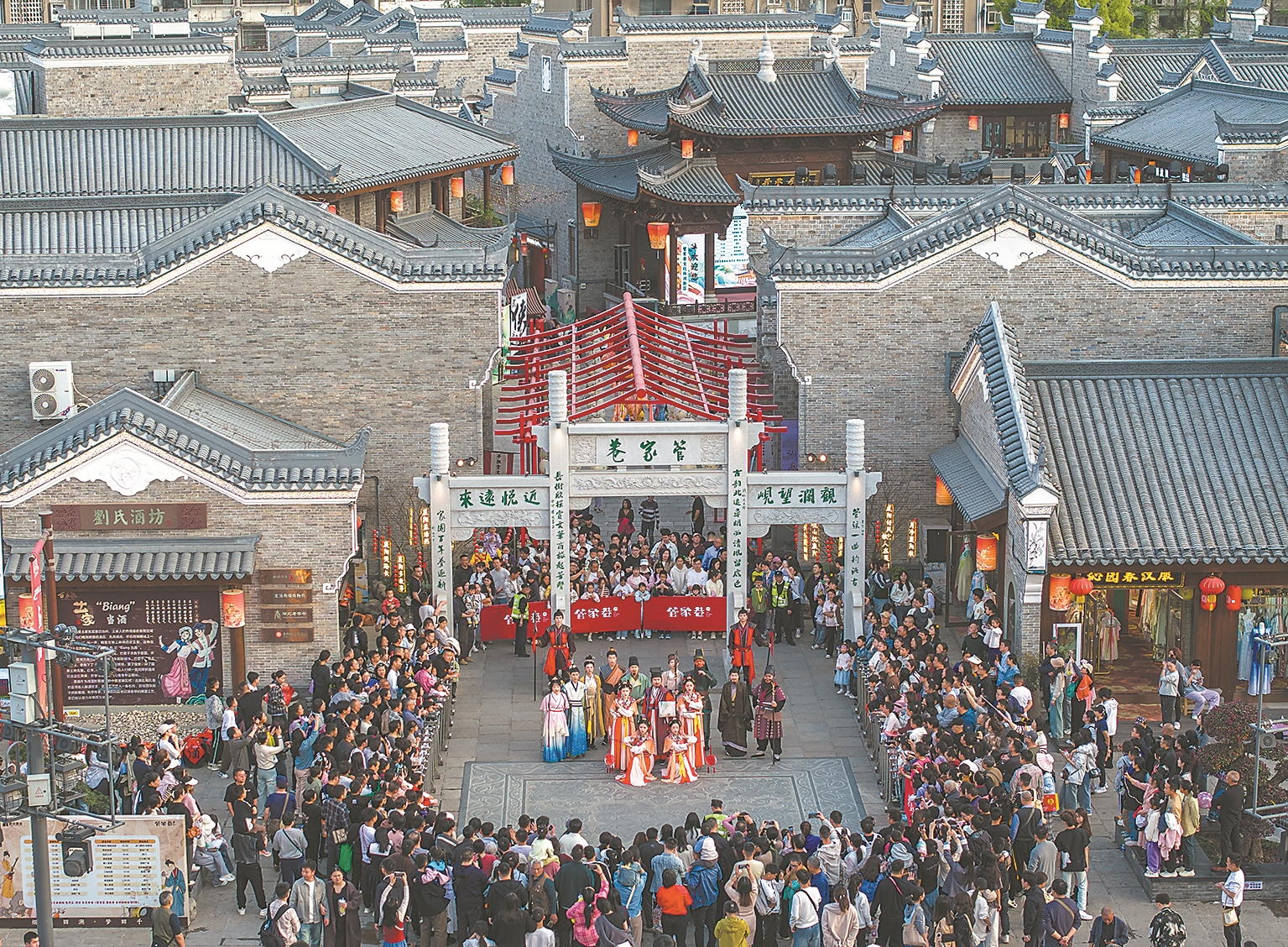 4月5日,游客在管家巷观看表演。清明假期,襄阳古城、唐城、华侨城奇幻度假区、古隆中、保康尧治河等景区“热力十足”,襄阳“春日文旅经济”动能强劲。据“去哪儿网”2025年清明假期酒店预订统计数据显示,襄阳市较2024年上涨129.15%,收入较2024年上涨133.26%。全媒体首席记者 杨东 摄