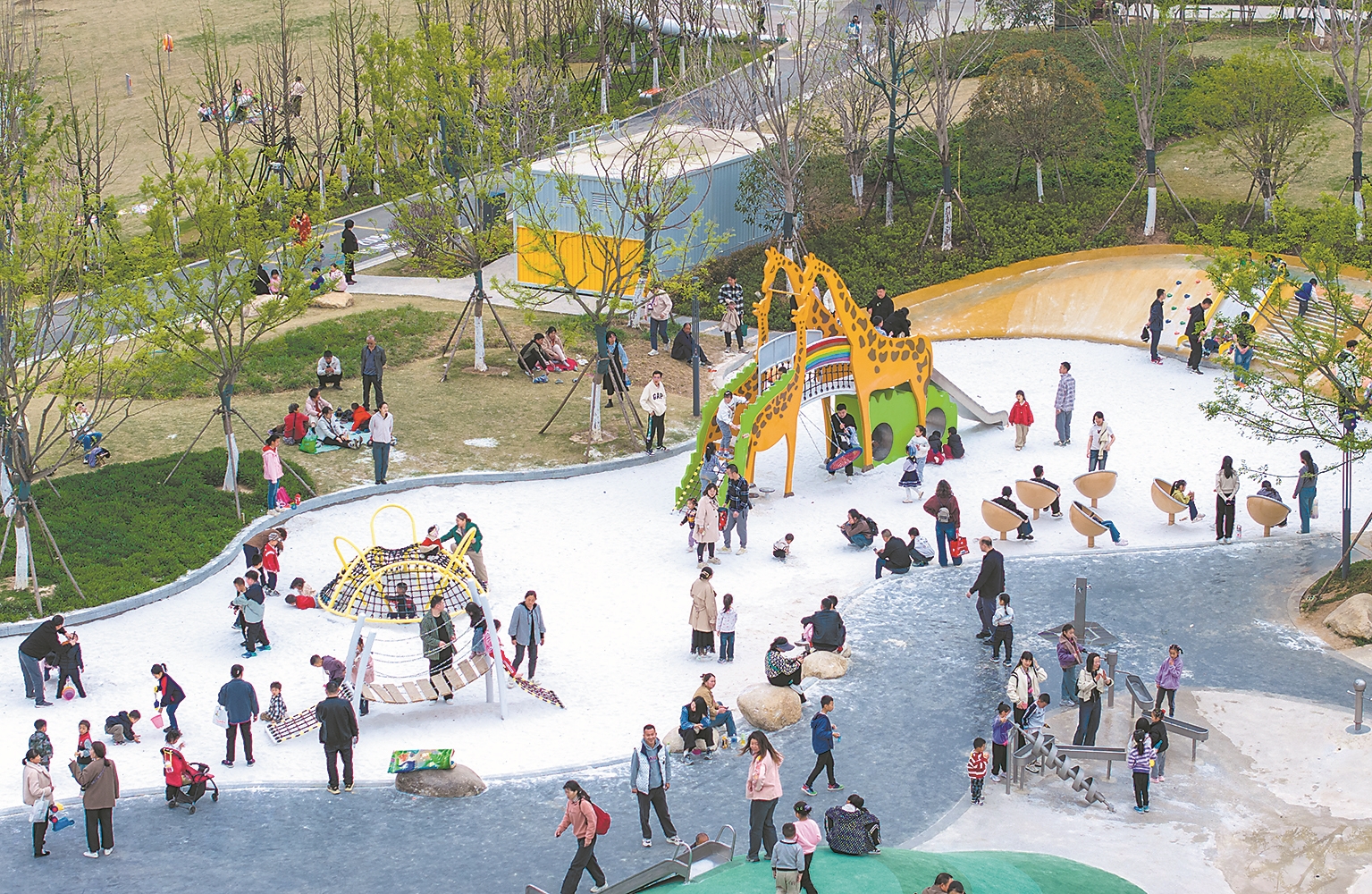 4月4日,市民在东津新区鹿鸣公园游玩。清明假期,我市天气晴好,众多市民前往城市公园亲近自然、放松身心。