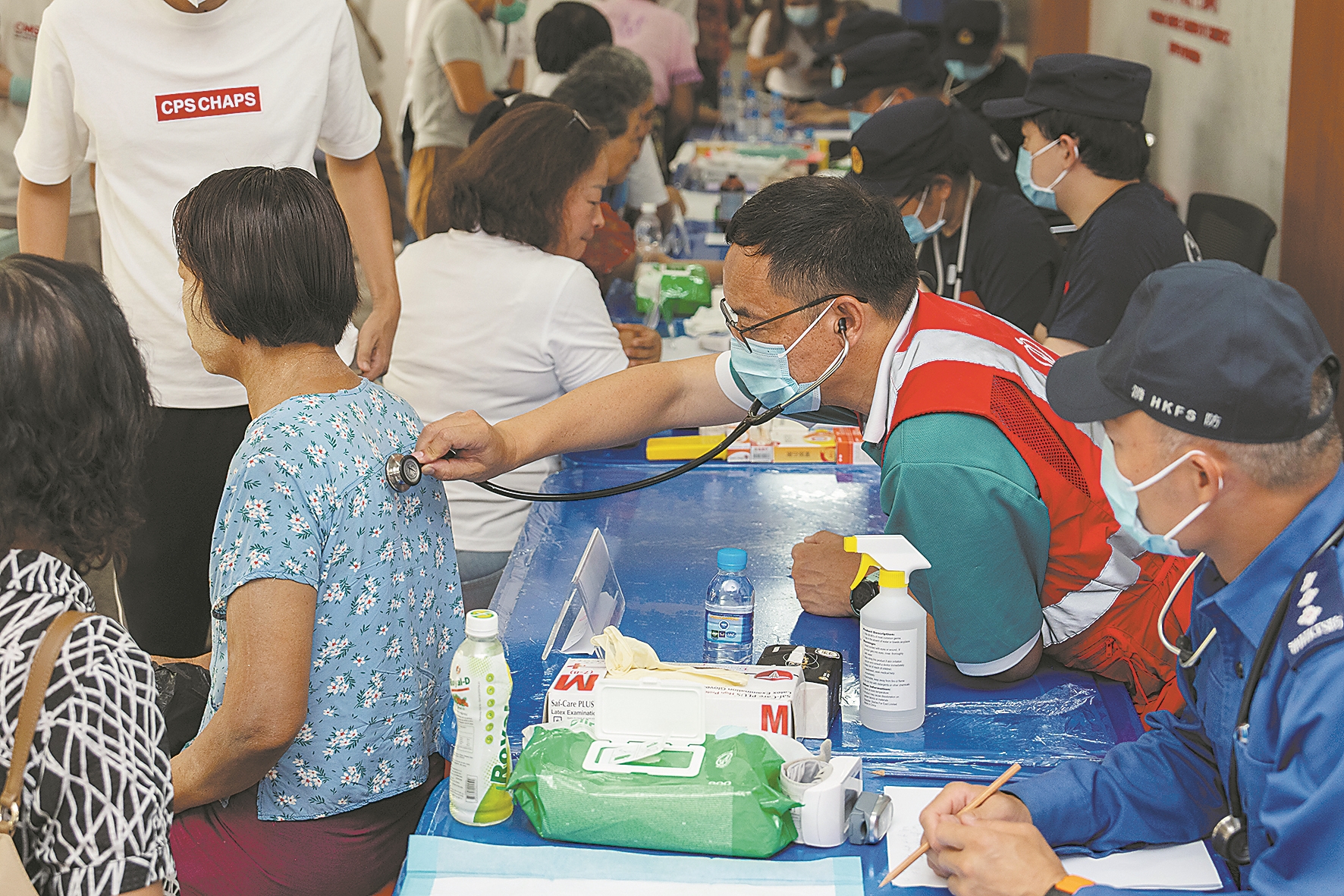 4月5日,在缅甸曼德勒,中国香港特区救援队队员为灾区民众诊疗。