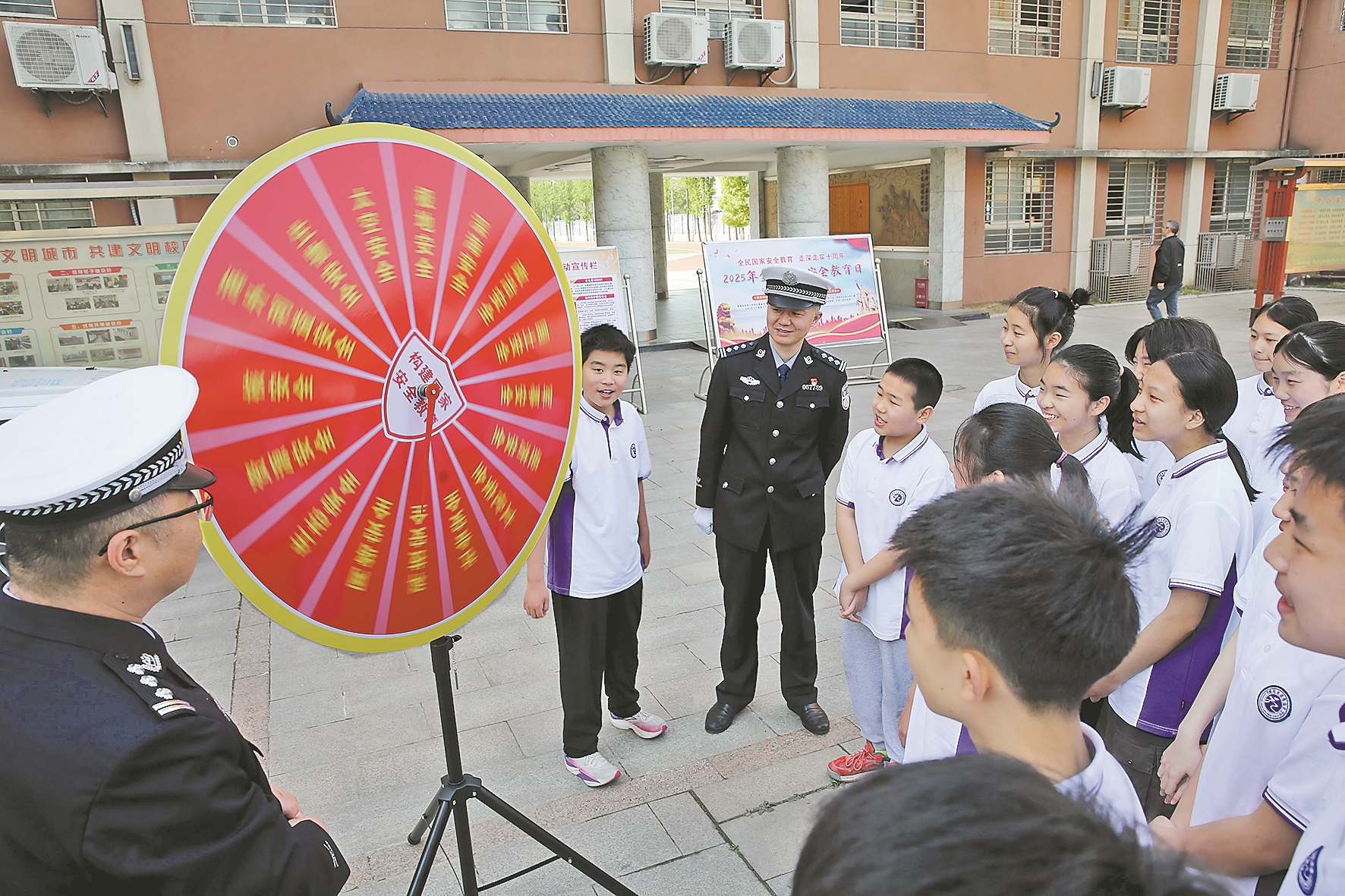 4月10日,在市诸葛亮中学,民警向同学们普及国家安全知识。在“4·15”全民国家安全教育日来临之际,市诸葛亮中学联合长虹路警务平台开展“国家安全记于心”安全教育活动,民警通过展示防御技巧、教育宣讲、游戏互动等形式,引导同学们增强维护国家安全意识。