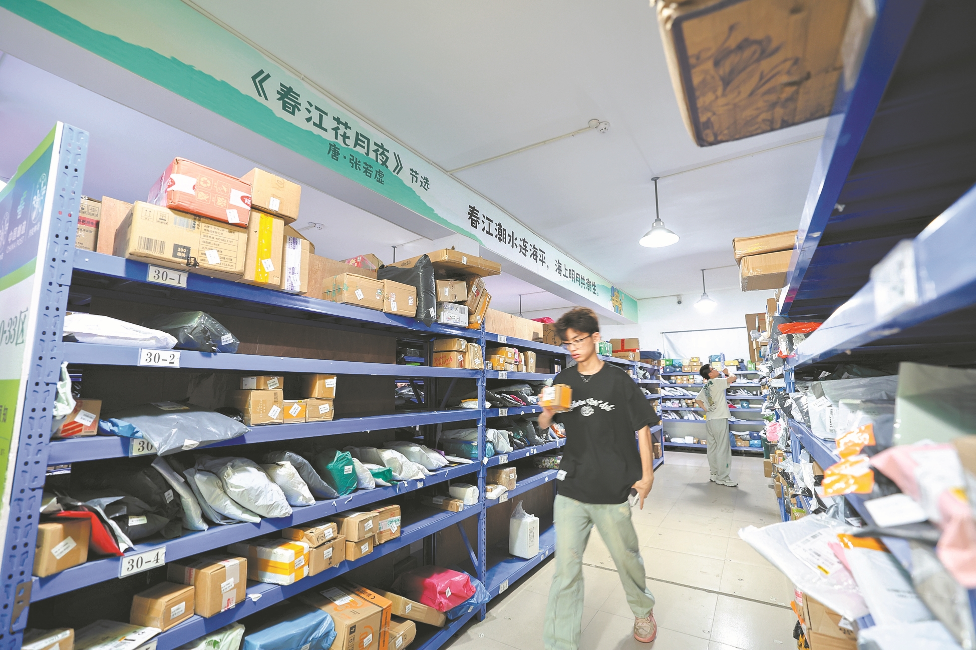 4月15日,学生在位于湖北文理学院的校园主题邮局——月亮邮局取快递。据了解,月亮邮局不仅保留了邮局传统风貌,还为学生和游客提供加盖纪念章戳、邮件“慢递”、有声明信片打印等特色服务,成为体验邮政文化的新消费、新场景、新空间。