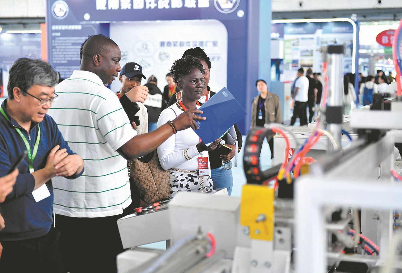 4月21日,人们在2025永年紧固件产业博览会上参观。